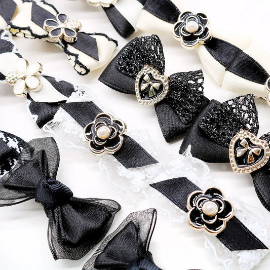 10PCS Dog Bows Wirh Metal Clips Black Style Luxury Pearl Puppy Bows Hair Accessories For Dogs Handmade Pet Small Dog Bowknots