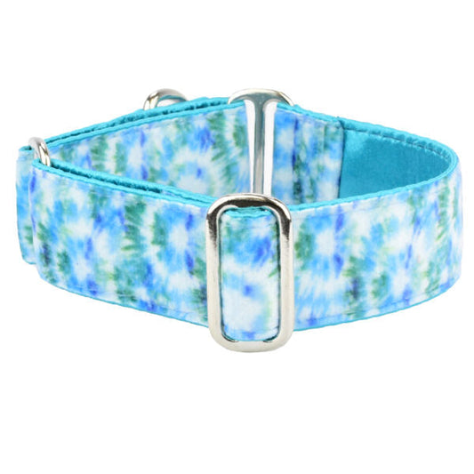 Teal Tie-Dye Swiss Velvet Buckle Martingale Dog Collar