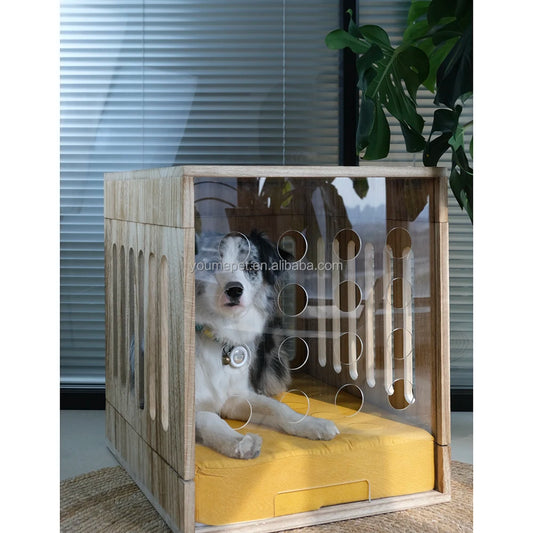 Ventilated Wooden Dog House Removable Acrylic Door With Honeycomb Vents Pet Beds Dog Beds Luxury Pet Houses & Furniture