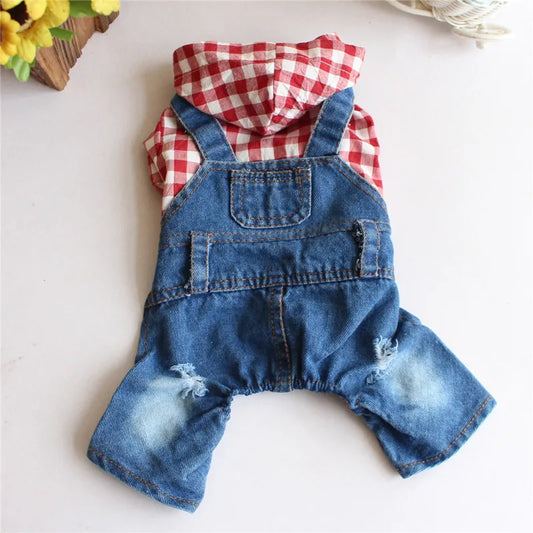 Dog Denim Jumpsuits Striped Plaid Puppy Cat Hoodie Overalls Yorkie French Bulldog Clothes Jean Jacket Pet Outfits for Small Dogs