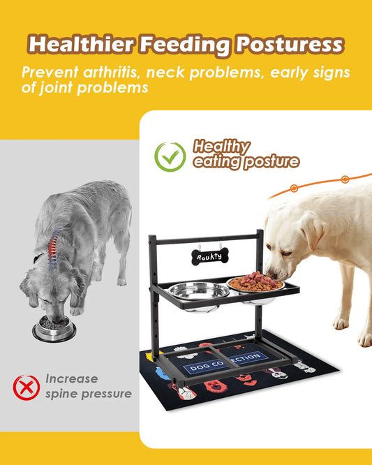 Elevated Dog Bowls with Slow Feeder,Adjusable Height Raised Dog Bowl Stand with 2 Stainless Steel 1200ML Dog Food Bowls, Dog Bowls with Mat for Small Medium Large Dogs and Cats