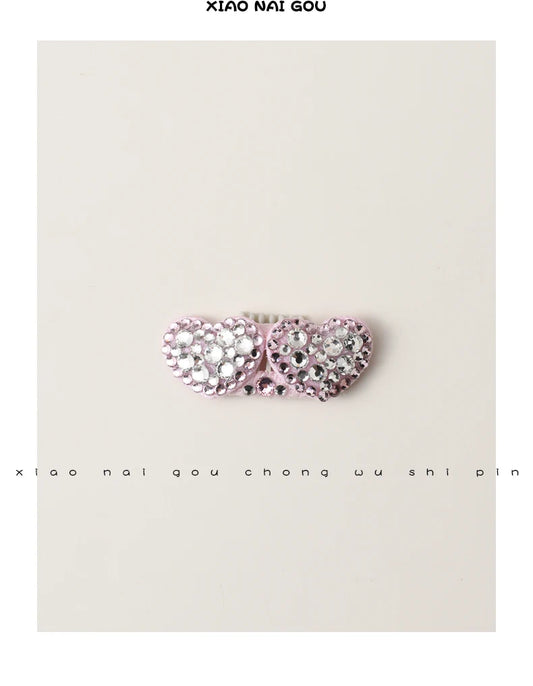 Luxury Pink Series Pet Dog Head-wear Supplies Fine Handmade Crystal Heart Bow Hairpins For Puppy Dogs Cute Hair Clips Jewelry