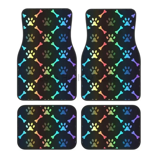 Rainbow Dog Paw Print Car Floor Mats Set of 4 Vehicle Front and Rear Foot Mats Non-Slip Car Accessories Universal for Car SUV
