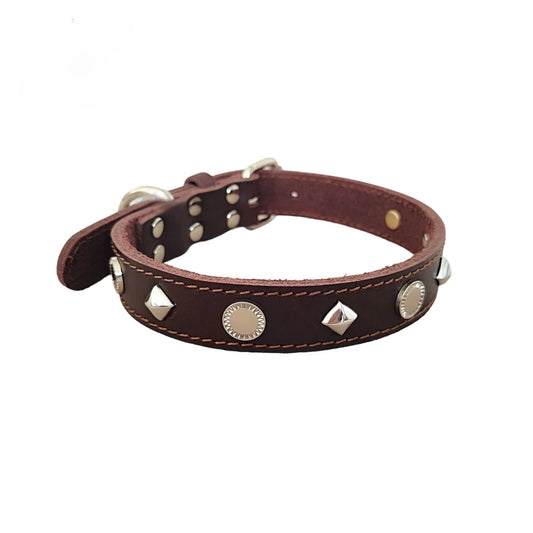 Handmade luxury leather dog collars with rivets for pets, soft and comfortable top layer of cowhideall types of dogs