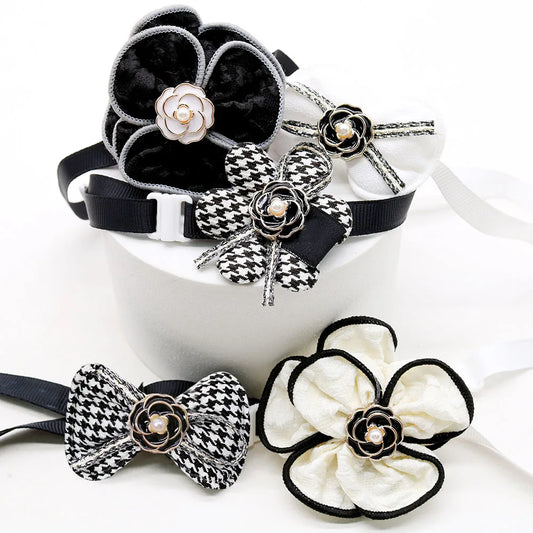 5PCS Adjustable Luxury Dog Bowties Balck Style Dog Bow Ties Collars With Pearl Pet Puppy Bowknots Grooming Supplies For Dogs