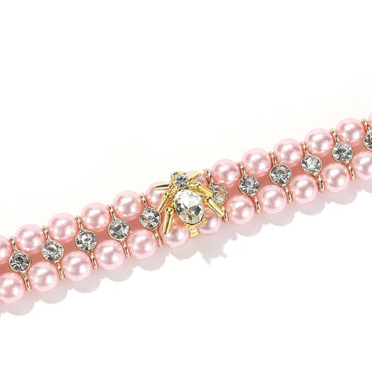 Pet Cat Pearl Collars with Luxury Crystal Rhinestone Diamond, Adjustable PU Leather Collar Necklace for Cats Small Medium Dogs