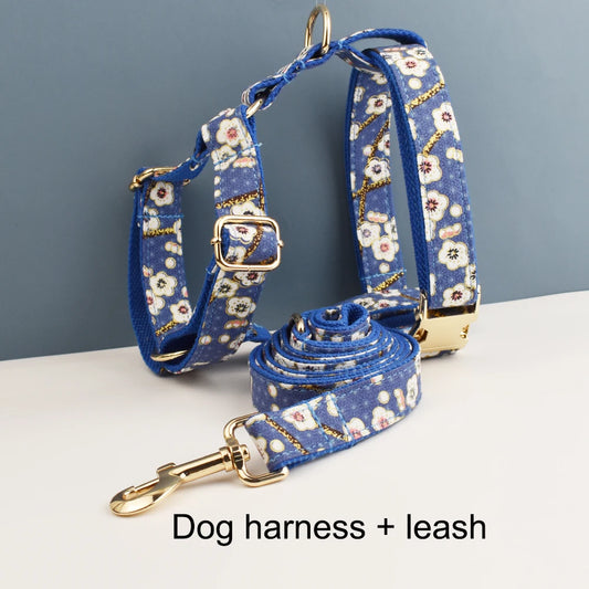 Luxury Personalized engravable dog collar Harness Leash Set Soft Cotton Floral Design Custom Bow Accessory for Dogs 02