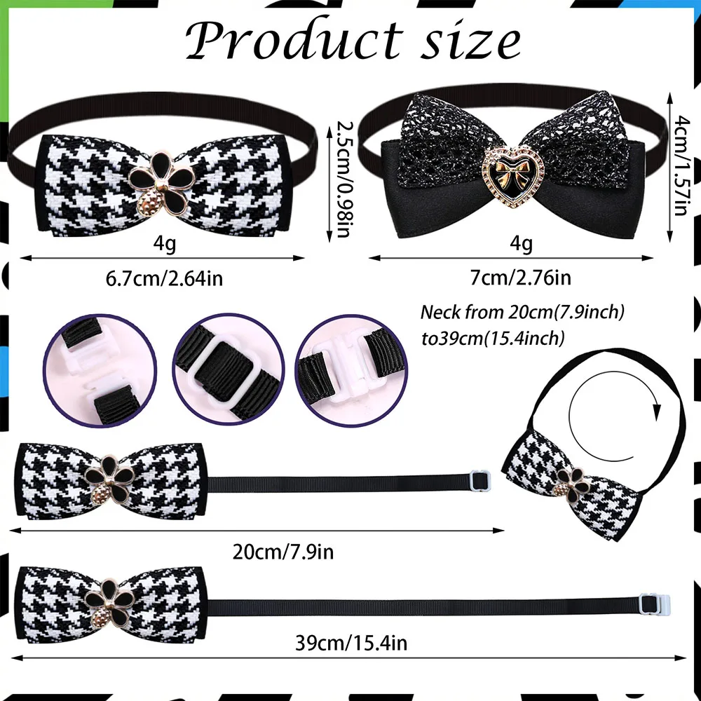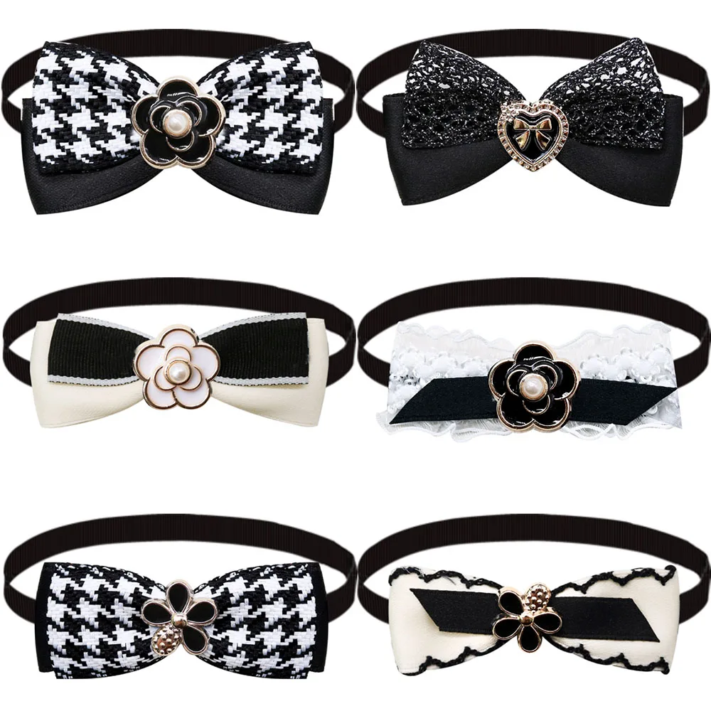 5PCS Adjustable Luxury Dog Bowties Balck Style Dog Bow Ties Collars With Pearl Pet Puppy Bowknots Grooming Supplies For Dogs