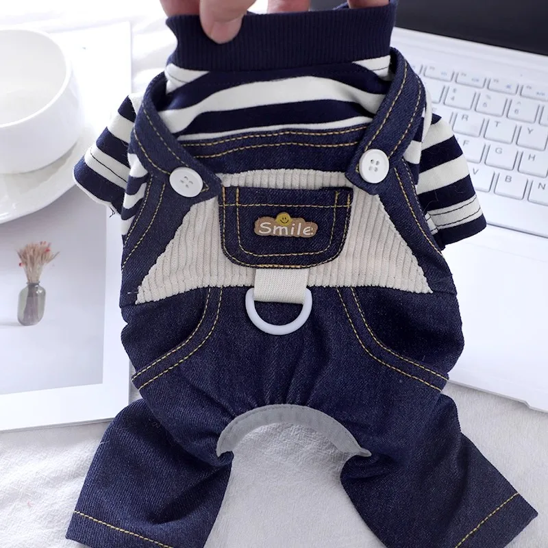 Blue Dog Jeans Pants Overall Costumes For Puppies Poodle Shih Tzu Little XS XL Pet Clothing With Vest Pet Fashion Shop Drop Ship