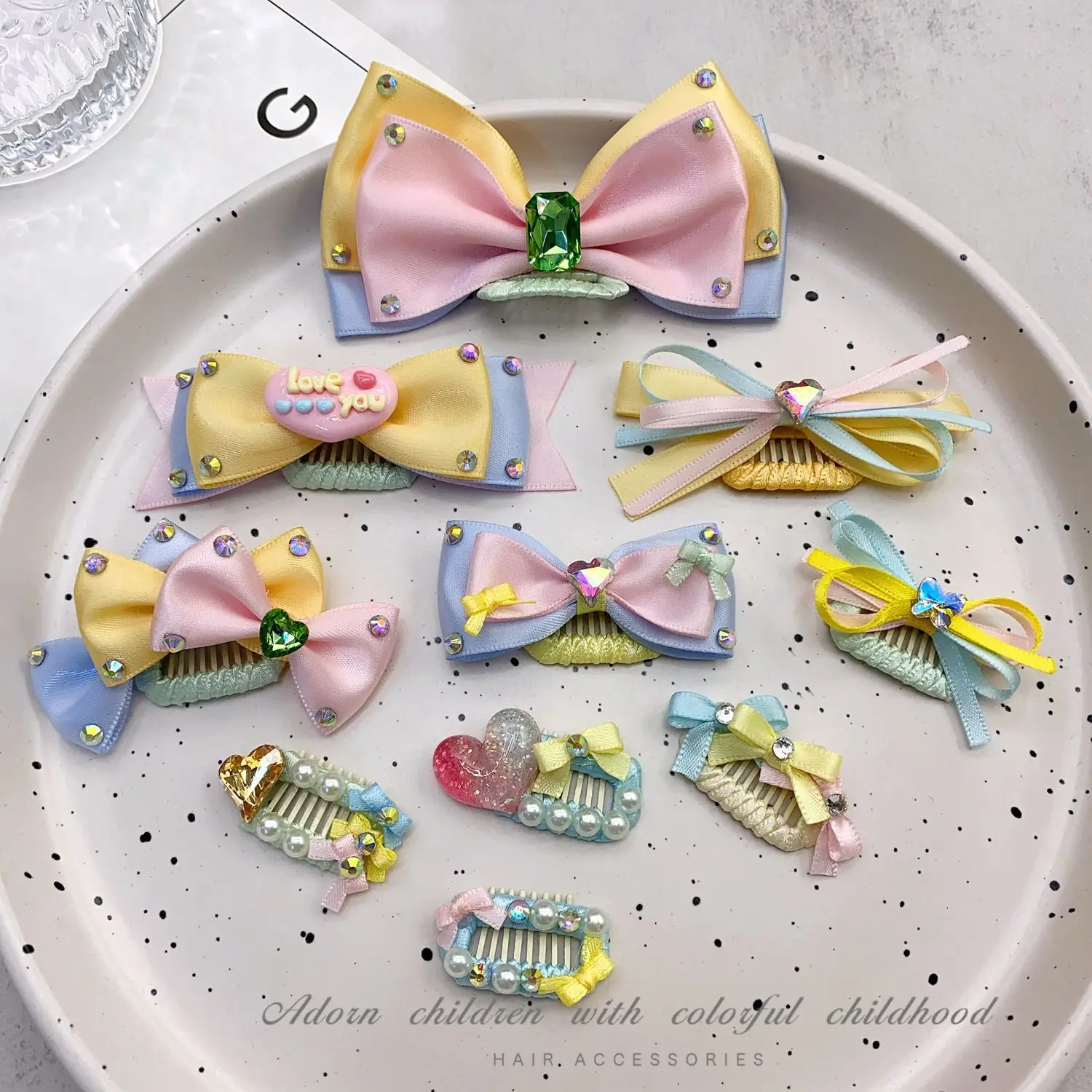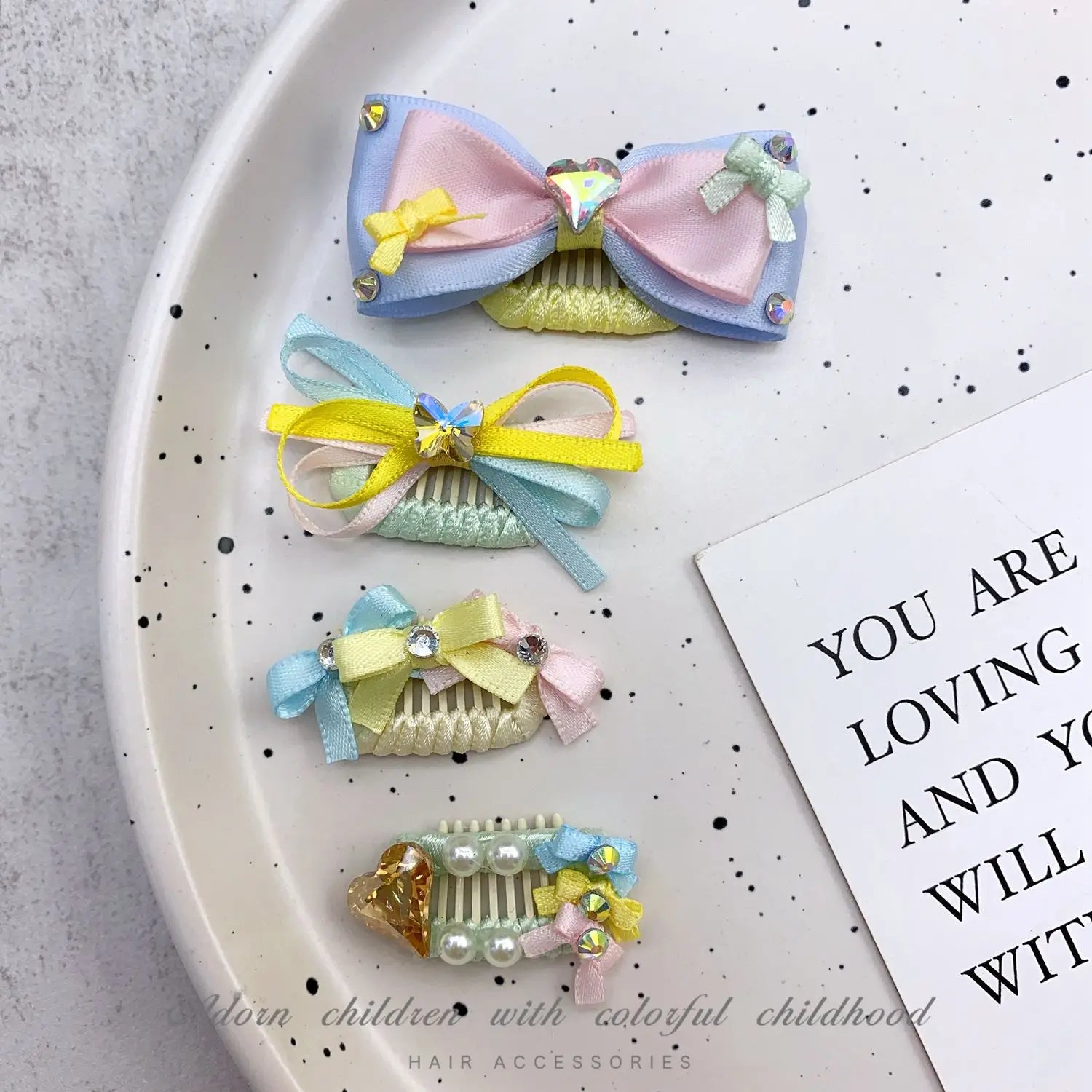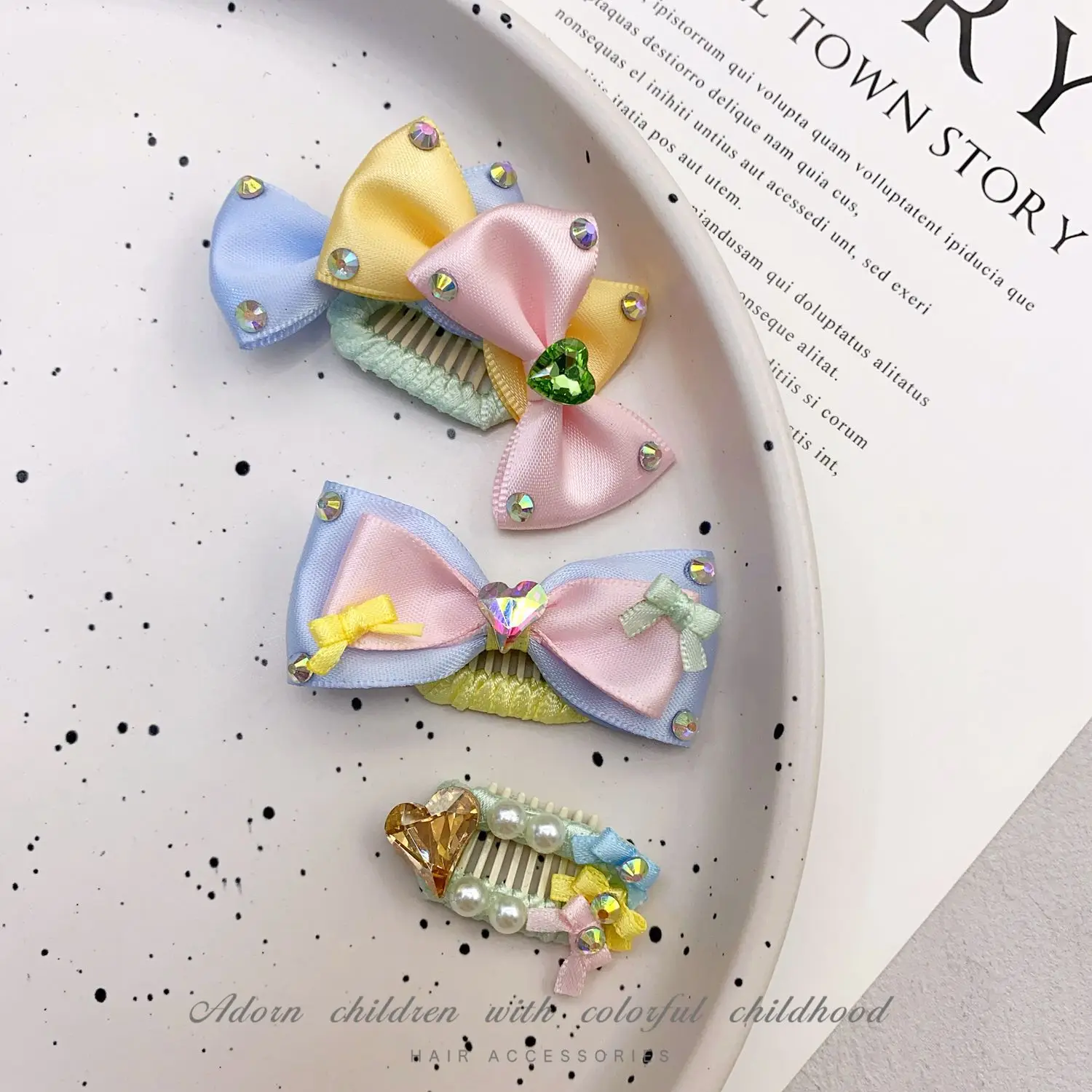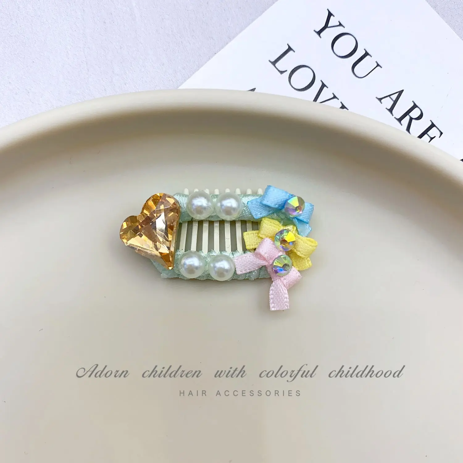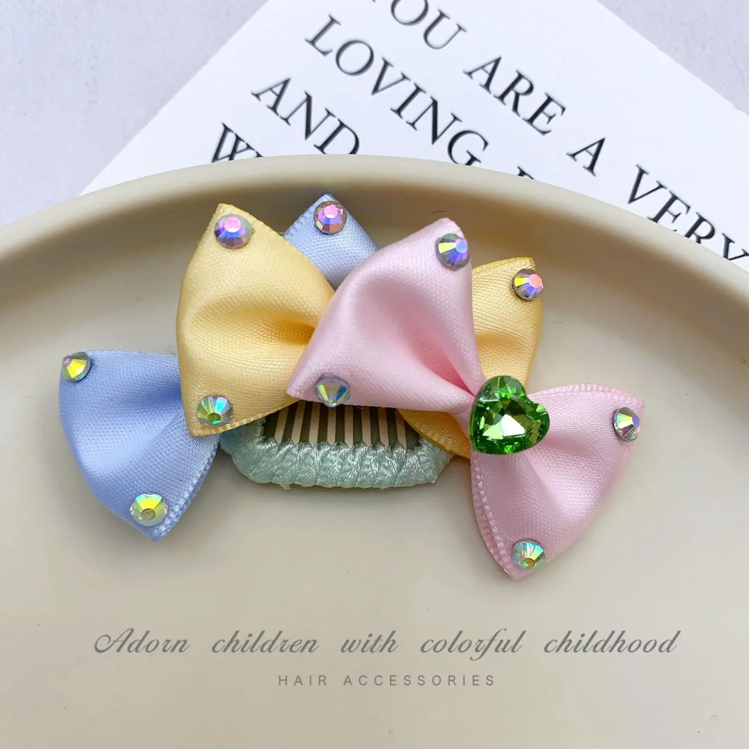 Cute Candy Color Bows Dog Hair Clips Luxury Handmade Pet Hair Accessories Pearl Crystal Hairpins For Puppy Dogs Chihuahua Poodle
