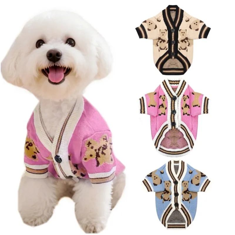 Dog Clothes Winter Chihuahua Pet Striped Dog Cardigan Sweater Bichon Pug Kitten Puppy Dog Warm Coat Cat Dog Supplies Pet Outfit