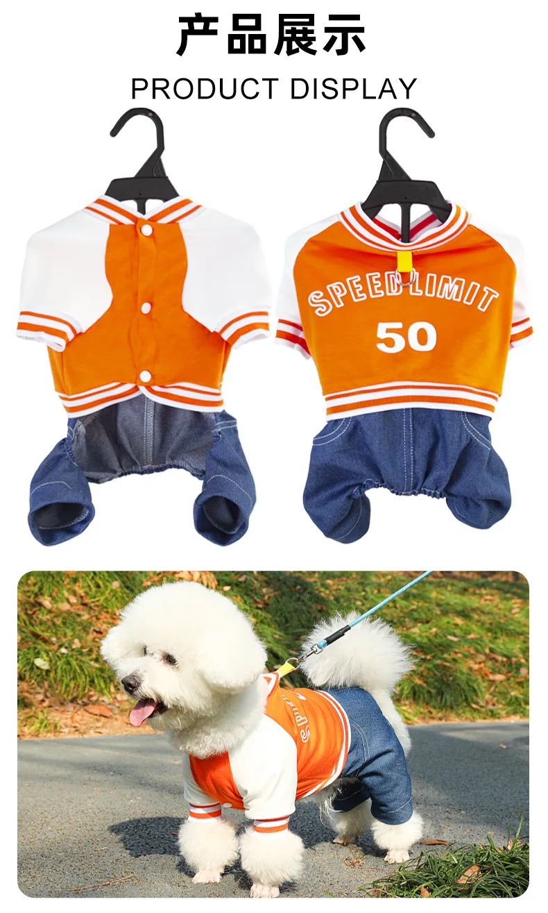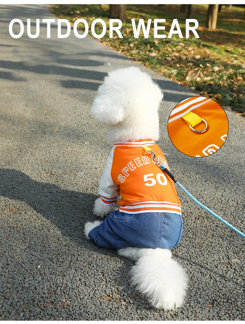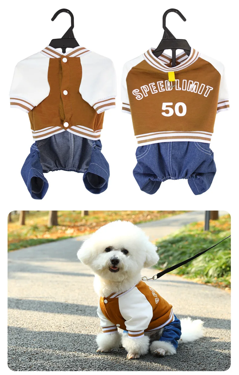 Dog Jumpsuit Jacket with Denim Pants Suit Overalls - 4-Legged One-piece Spring/Fall Outfits Pet Clothing for Small Medium Dogs
