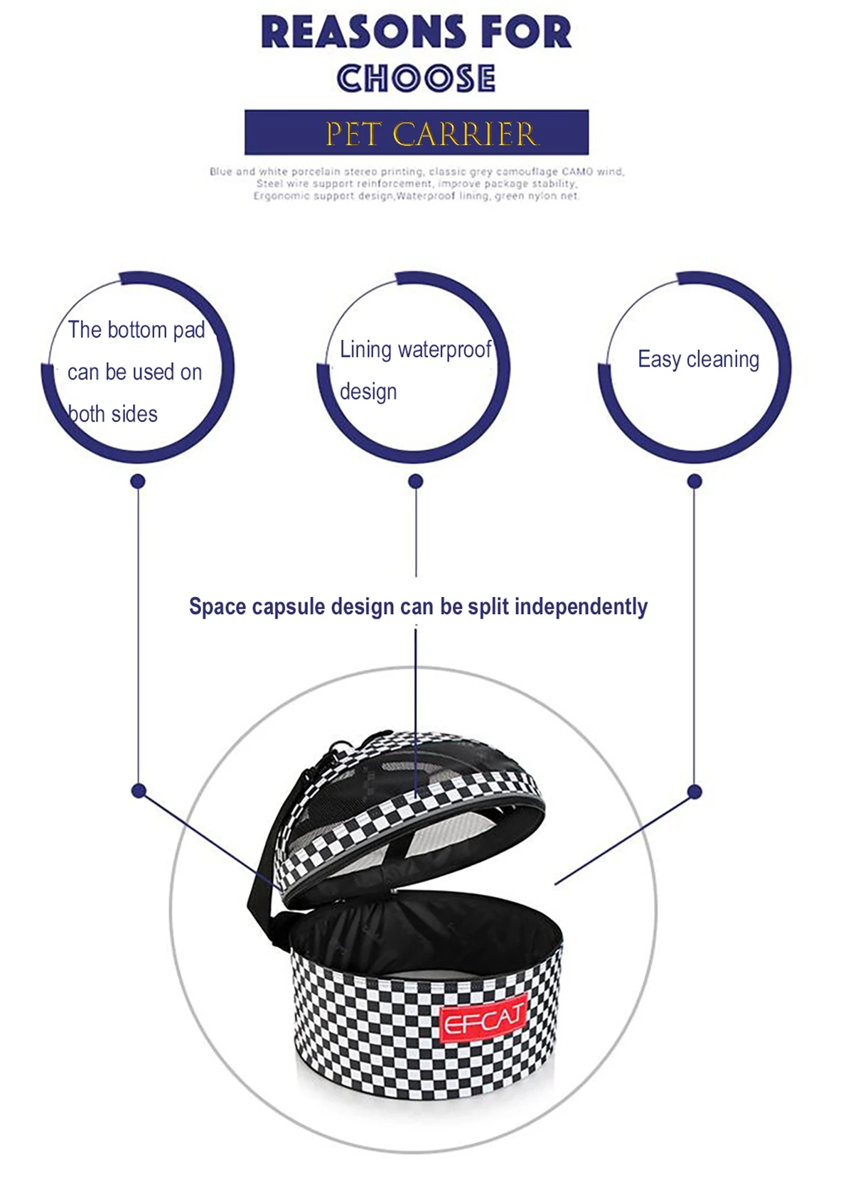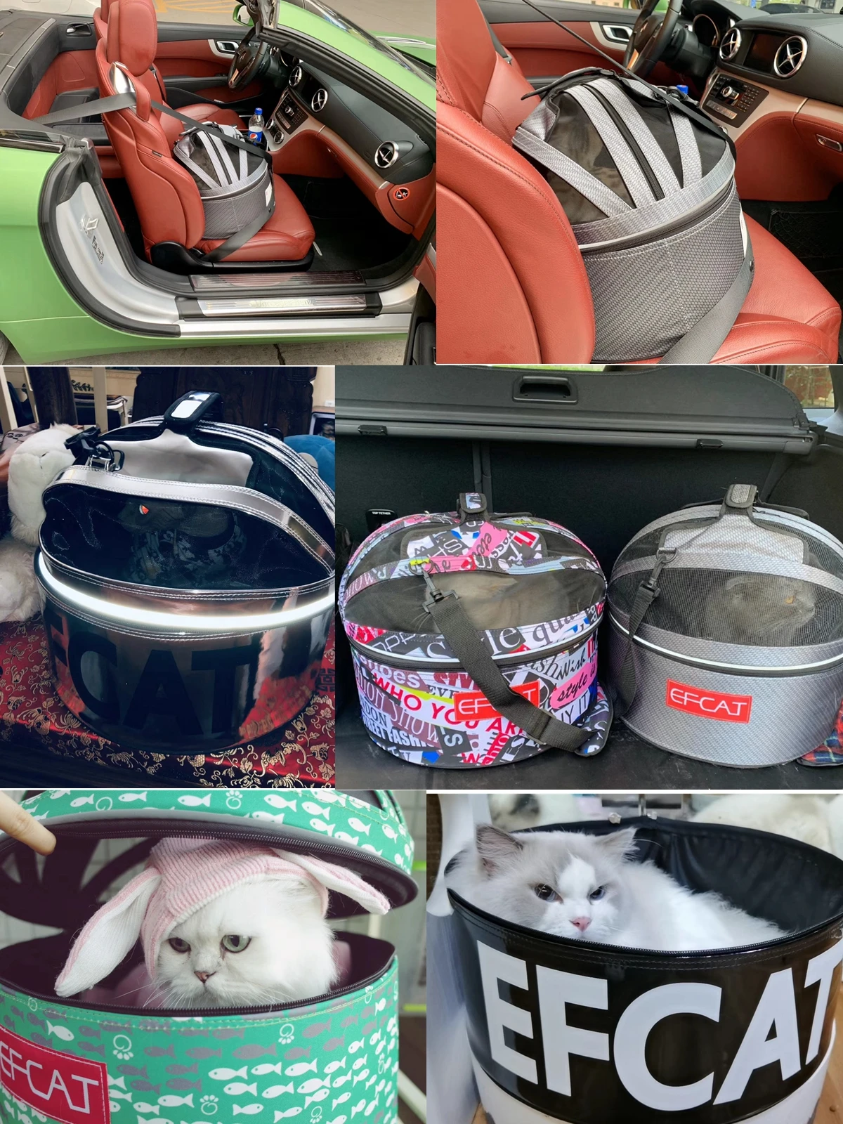EFCAT Luxury Pet Bed Round Space Bag,Puppy Kitten Basket,Outdoor Fashion Cat Dog Car Seat Bag
