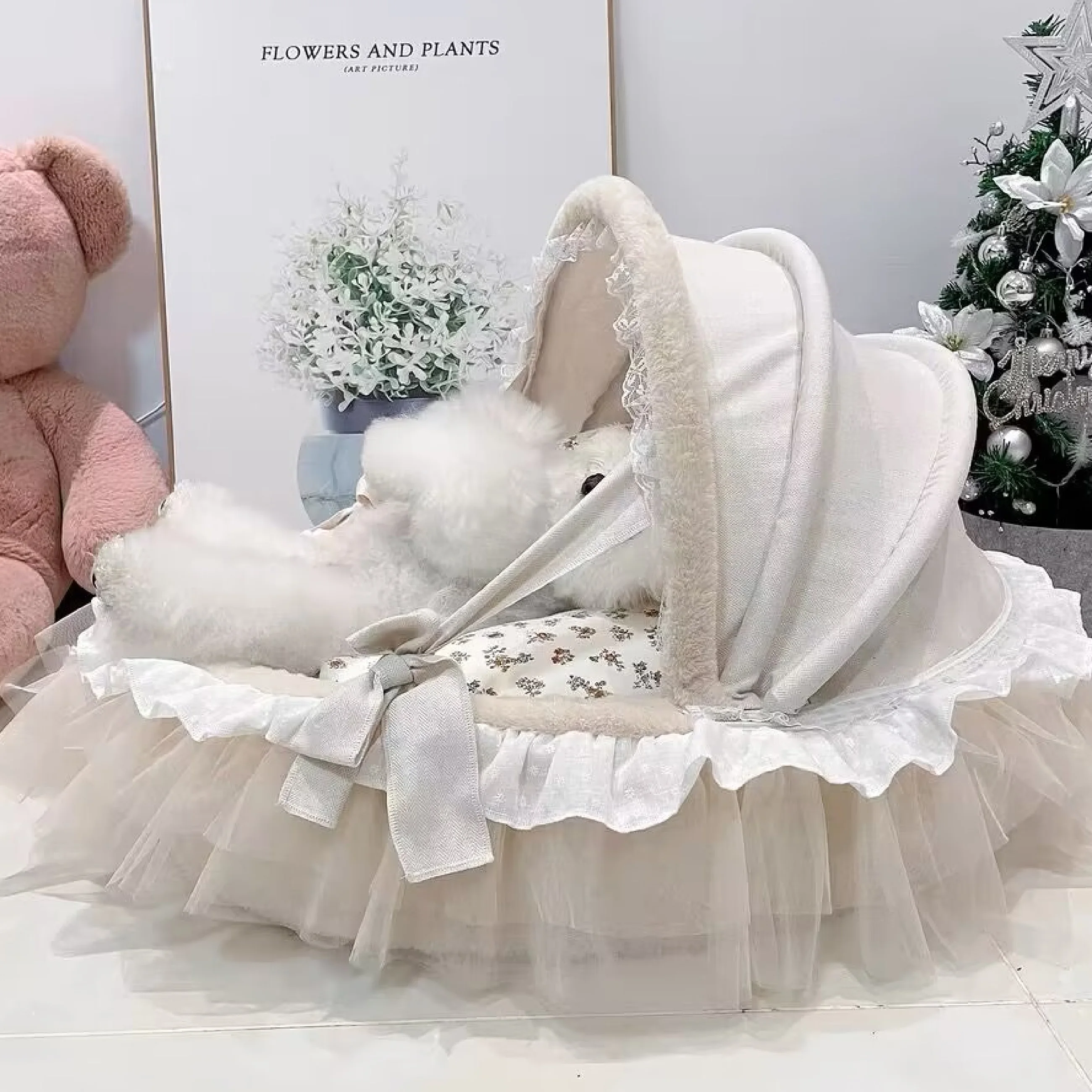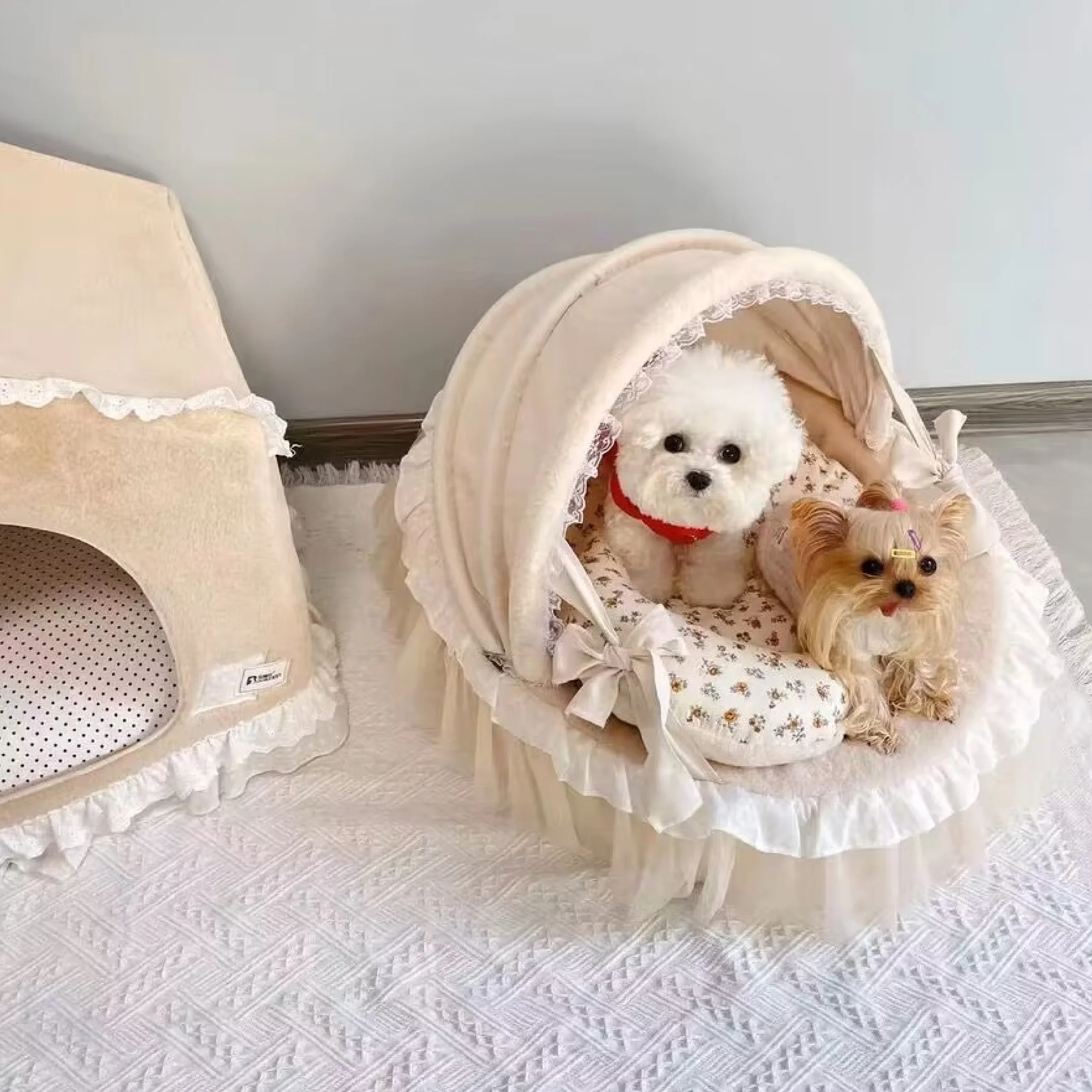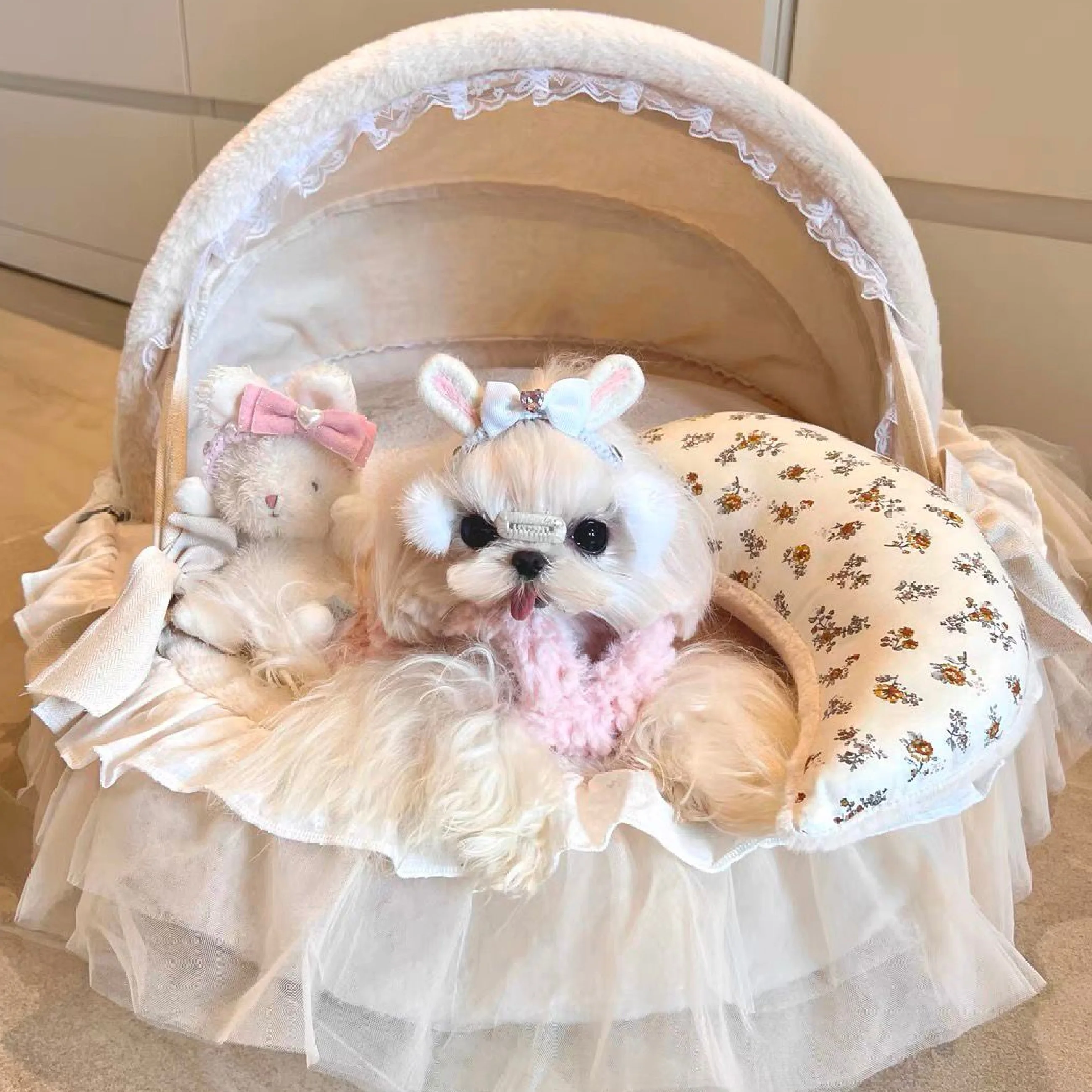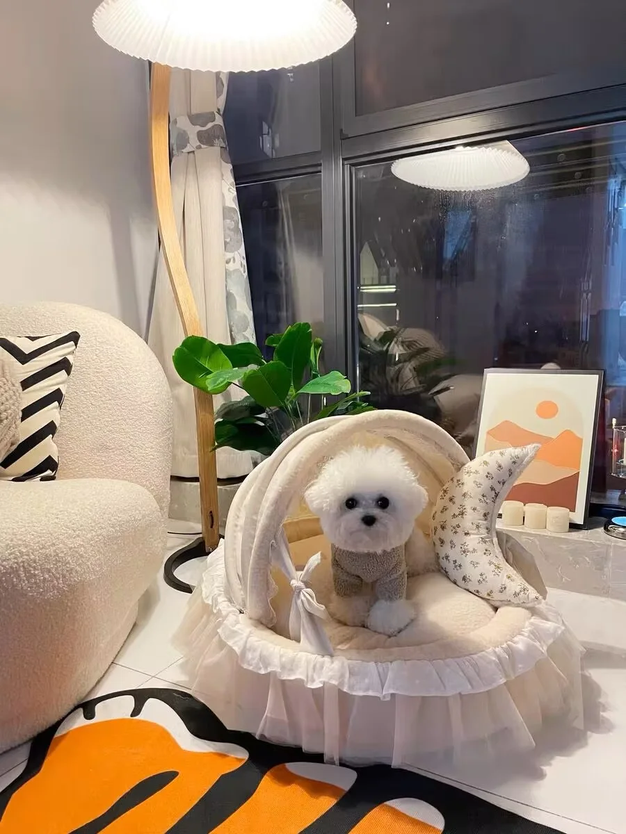 Fluffy Princess Luxury Winter Warm Deluxe Dog Cat Pet Cradle Folding Bed Sofa with Fleece Plush Accessories Velvet Items Couch