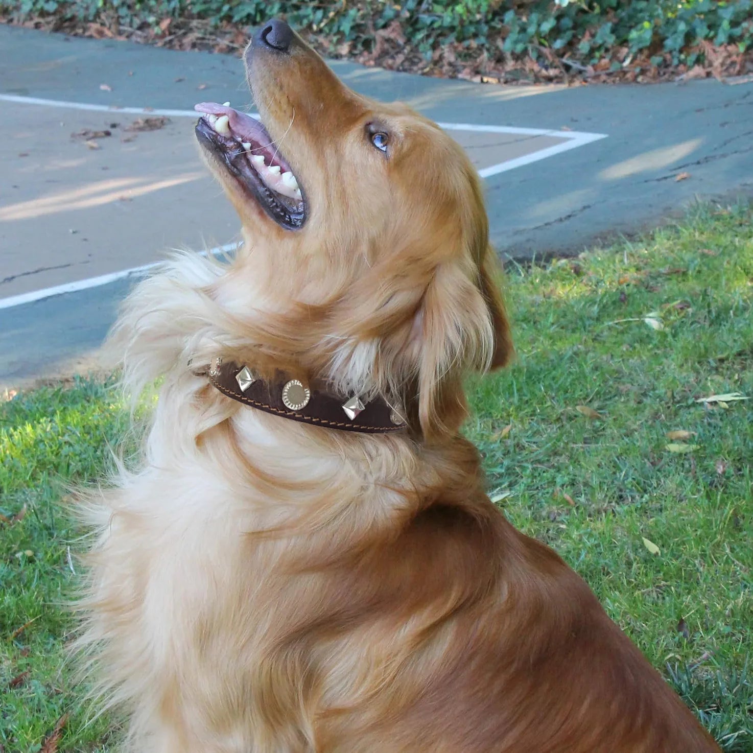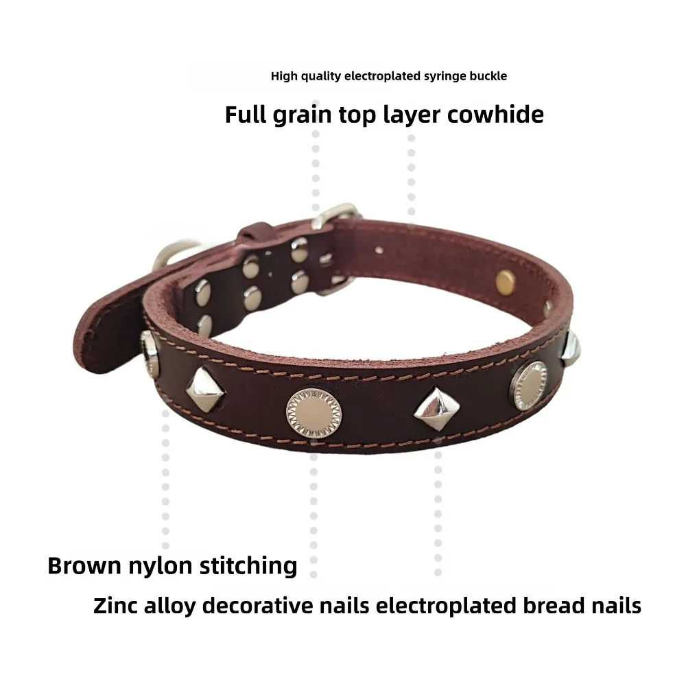Handmade luxury leather dog collars with rivets for pets, soft and comfortable top layer of cowhideall types of dogs