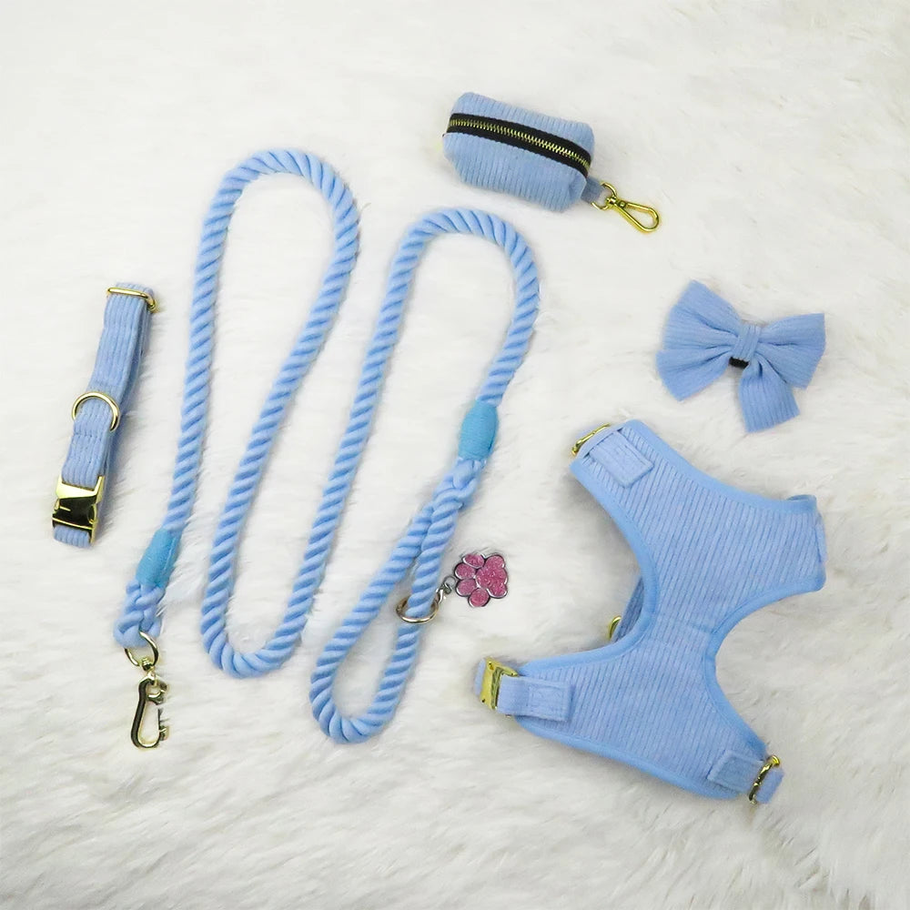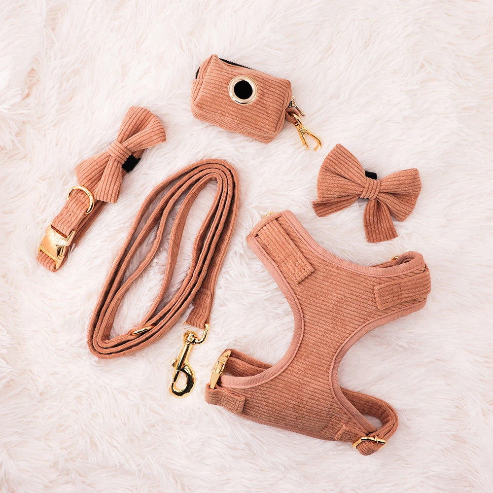 Hot Selling Premium Corduroy Fabric Dog Harness Set,Luxury Comfortable Corduroy Pet Harness Vest for Dogs