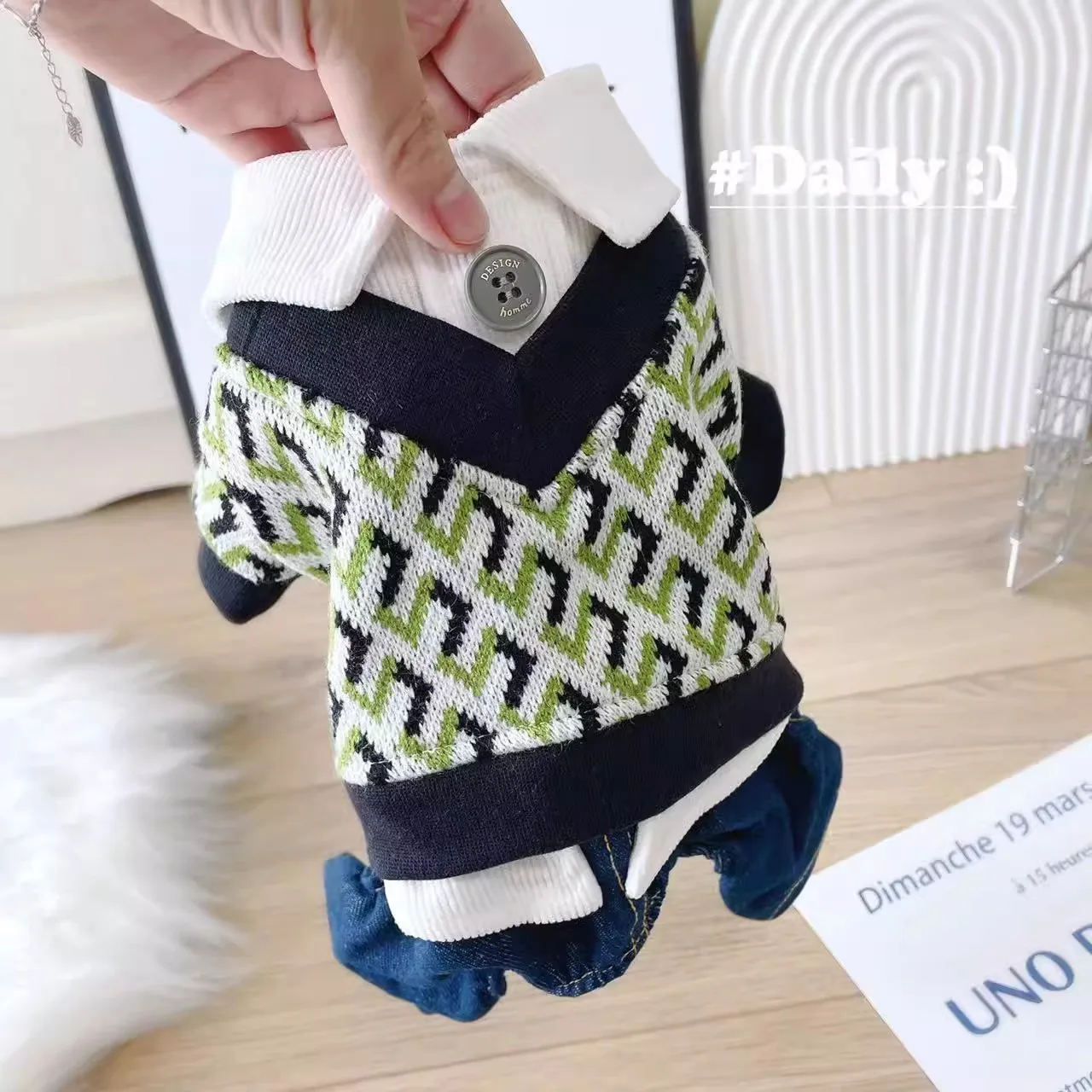 Knit Sweater Vest Costumes For Dogs With White Shirt Denim Pants Overall Small Puppy Animal Jumpsuit Jeans Pet Casual Suit Sets
