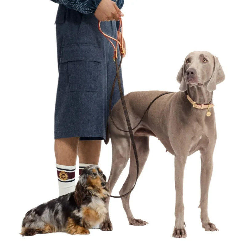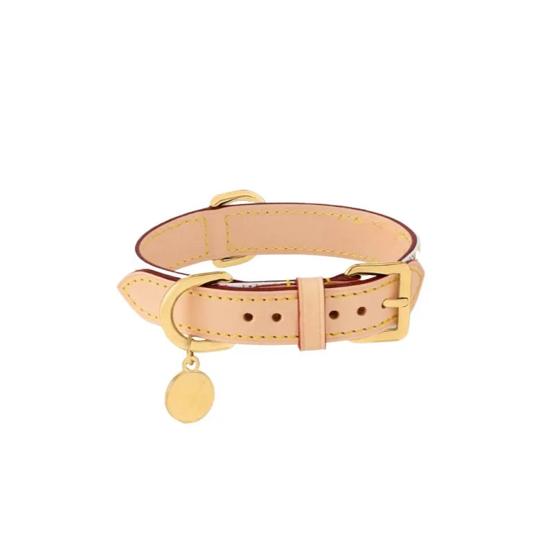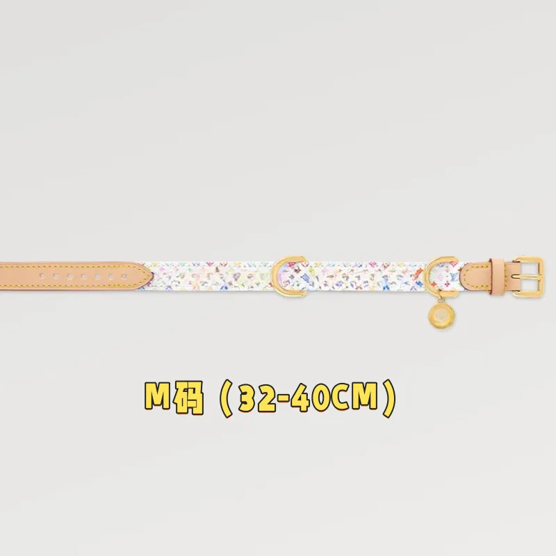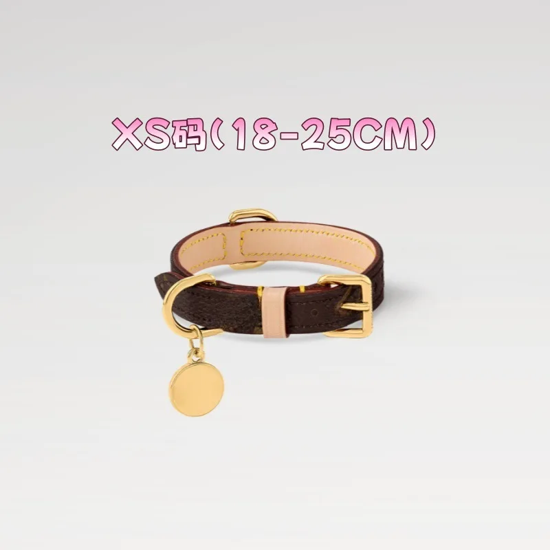 Luxury Adjustable PU Leather Dog Collar and Leash Set with Branded Designer Pattern for Puppy and Dogs