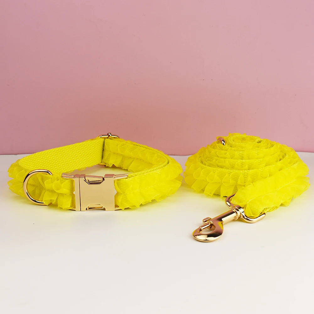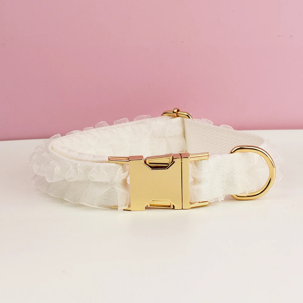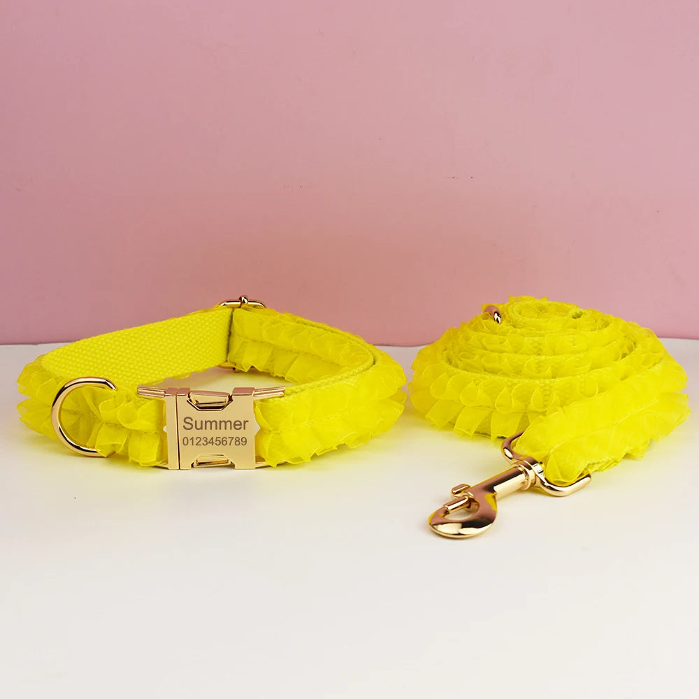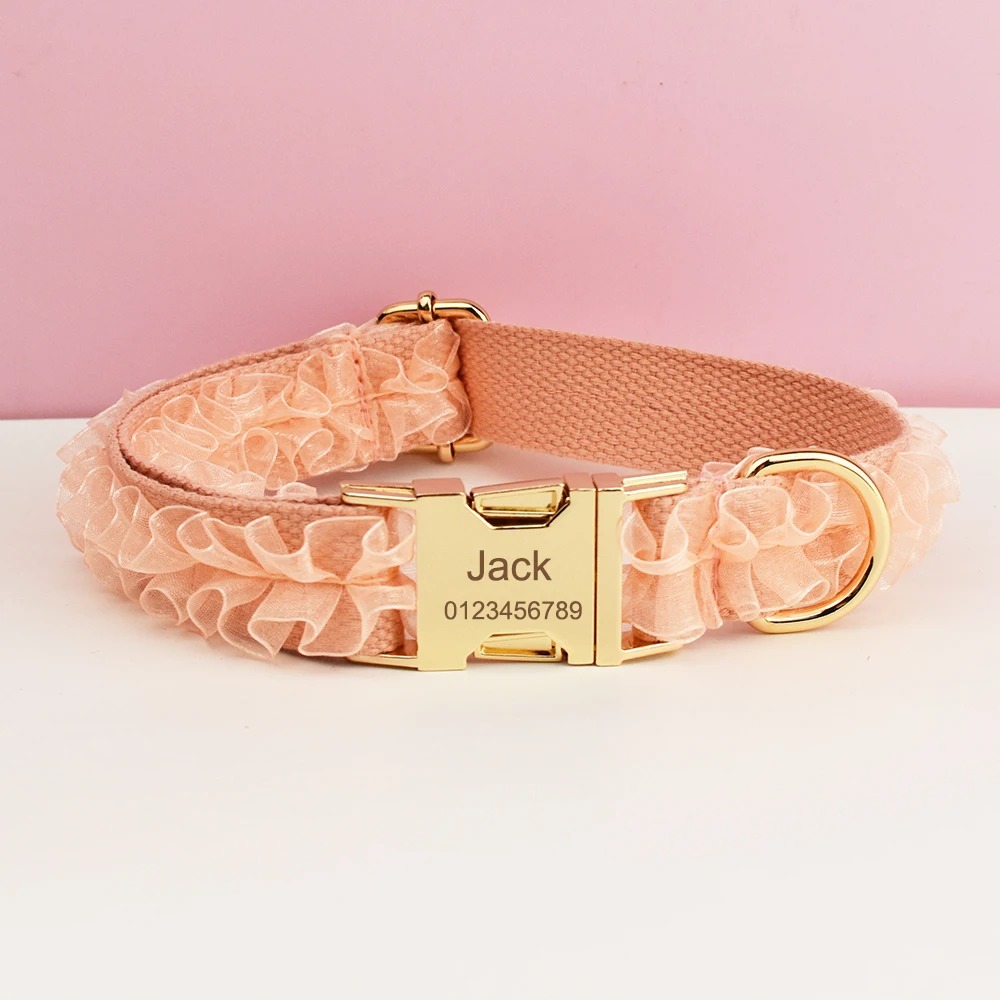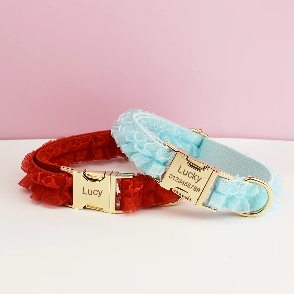 Luxury Custom Engraved Lace Designer Dog Collar And Leash Set Personalized Pet Harness Nameplate Wedding Accessory for Dogs