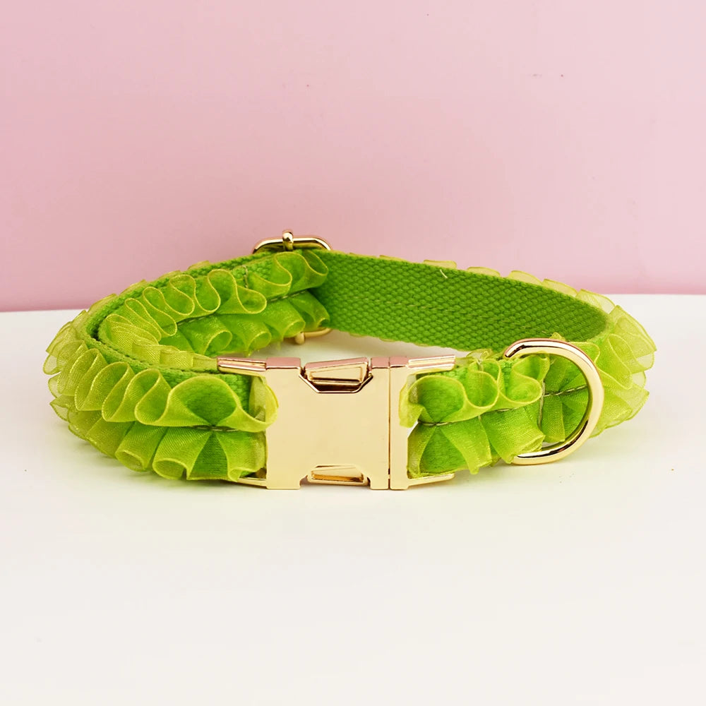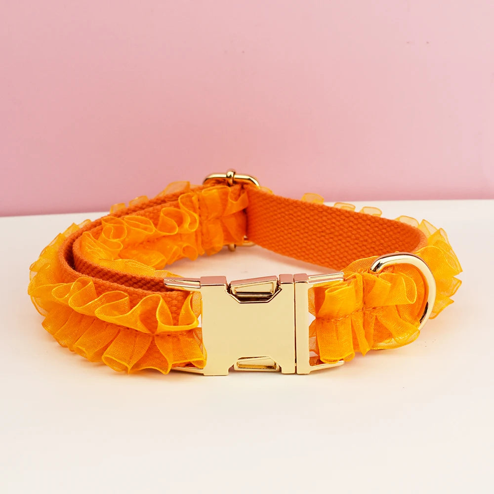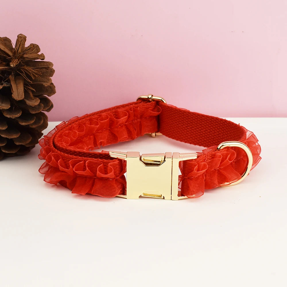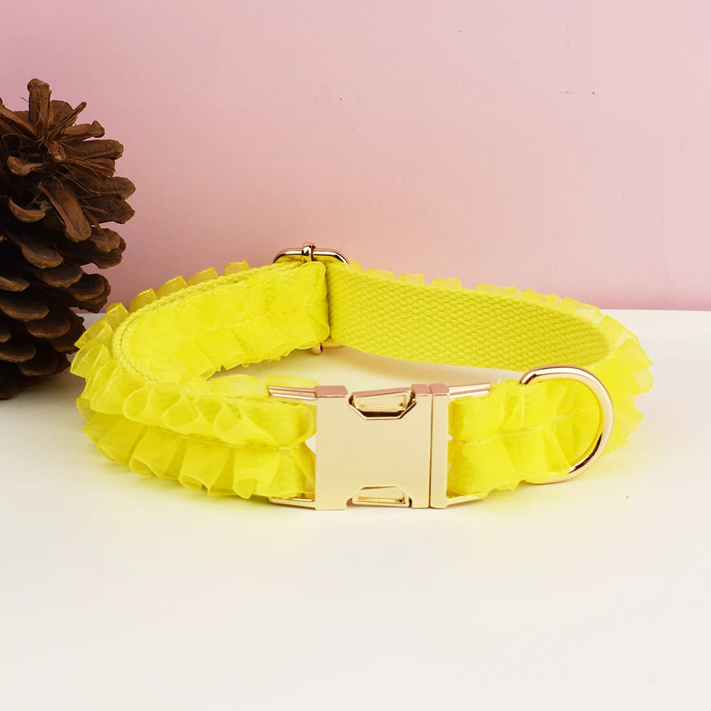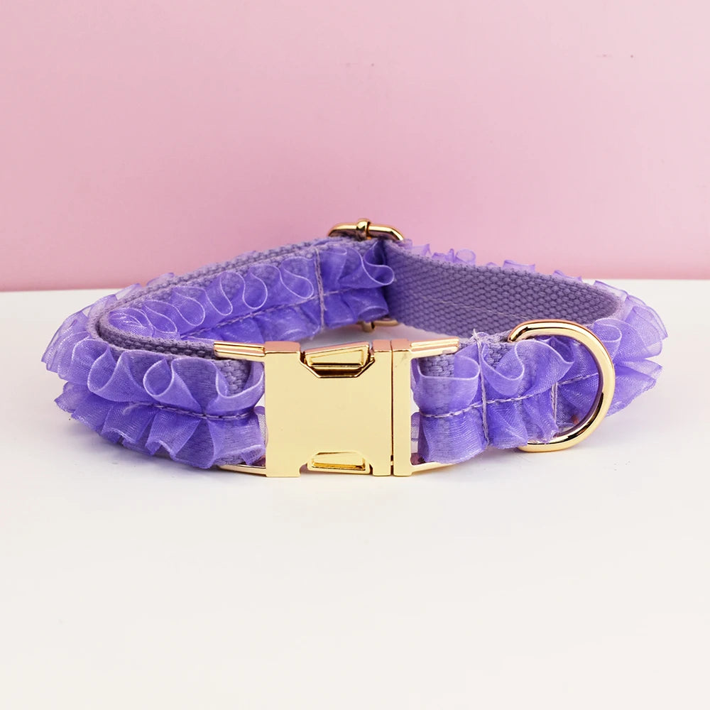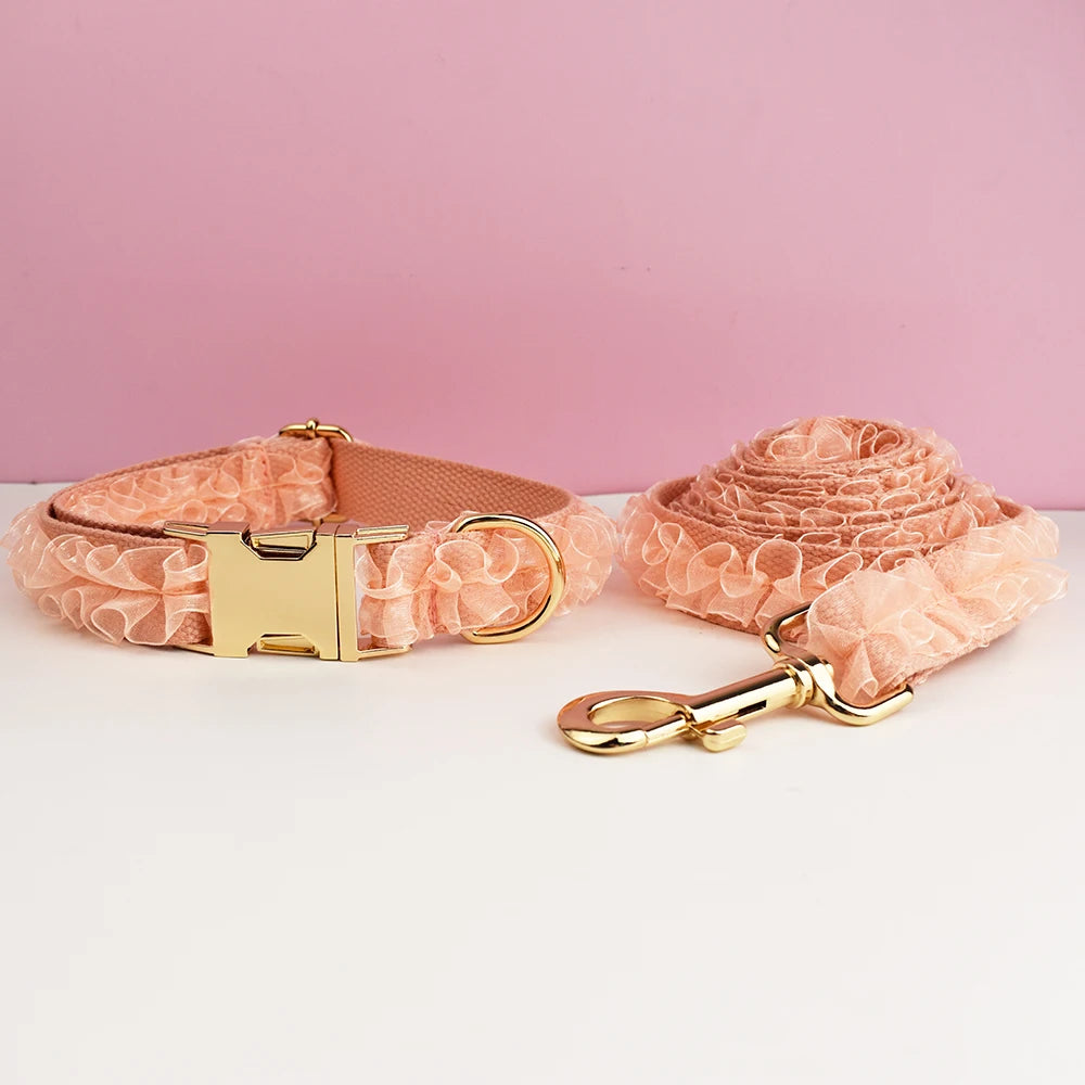 Luxury Custom Engraved Lace Designer Dog Collar And Leash Set Personalized Pet Harness Nameplate Wedding Accessory for Dogs