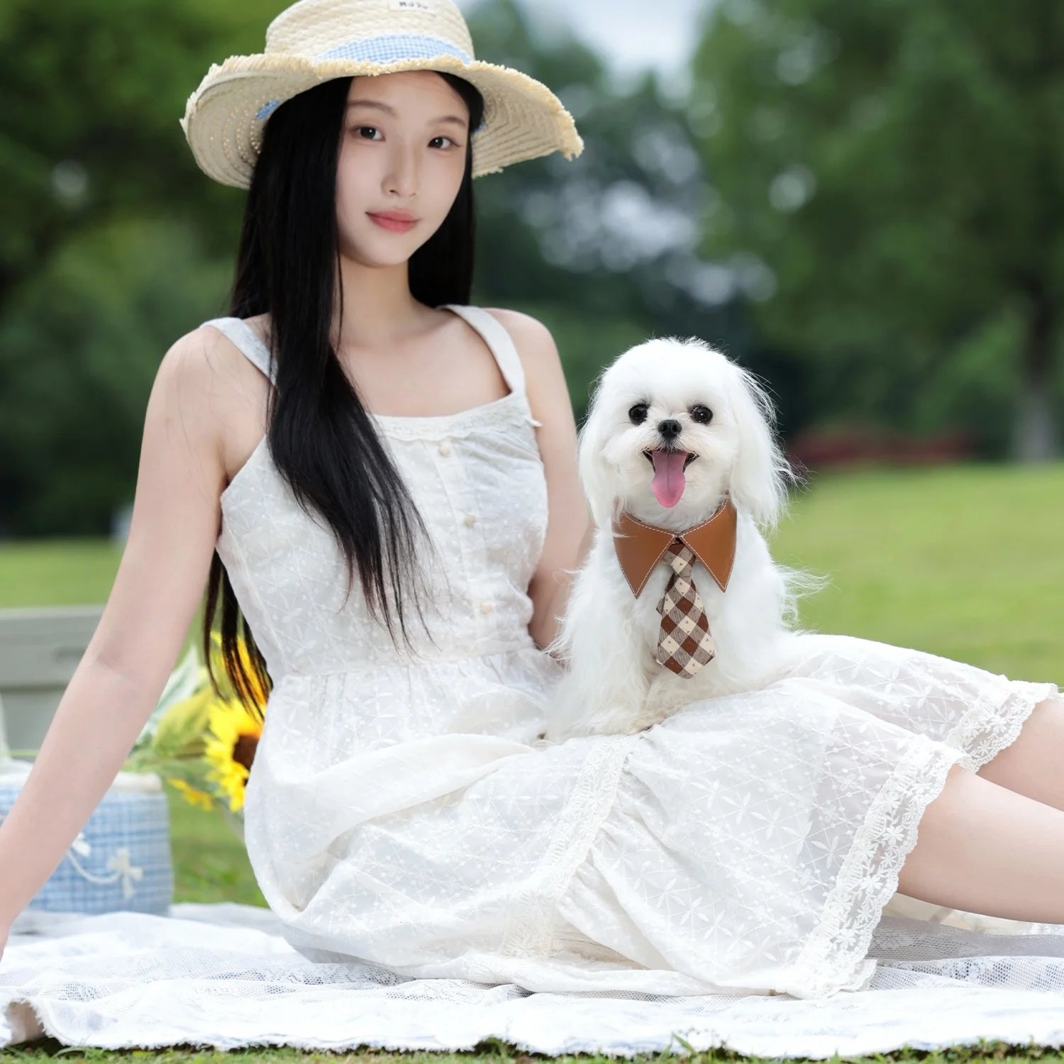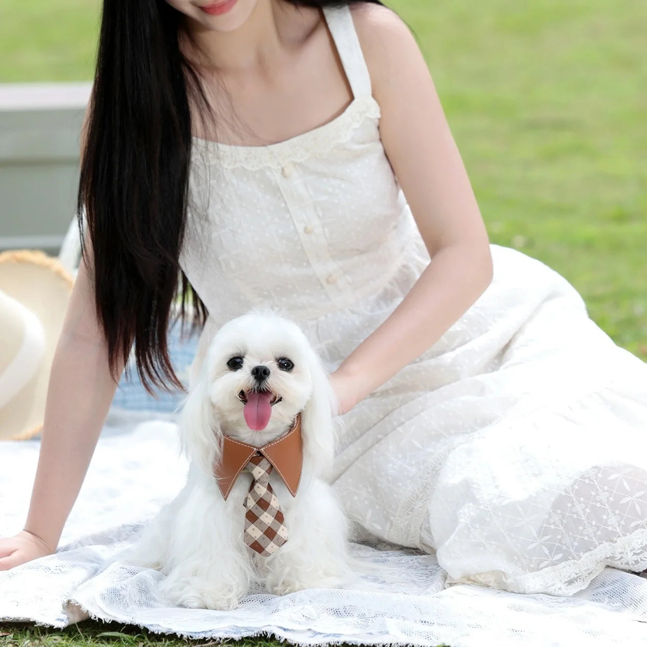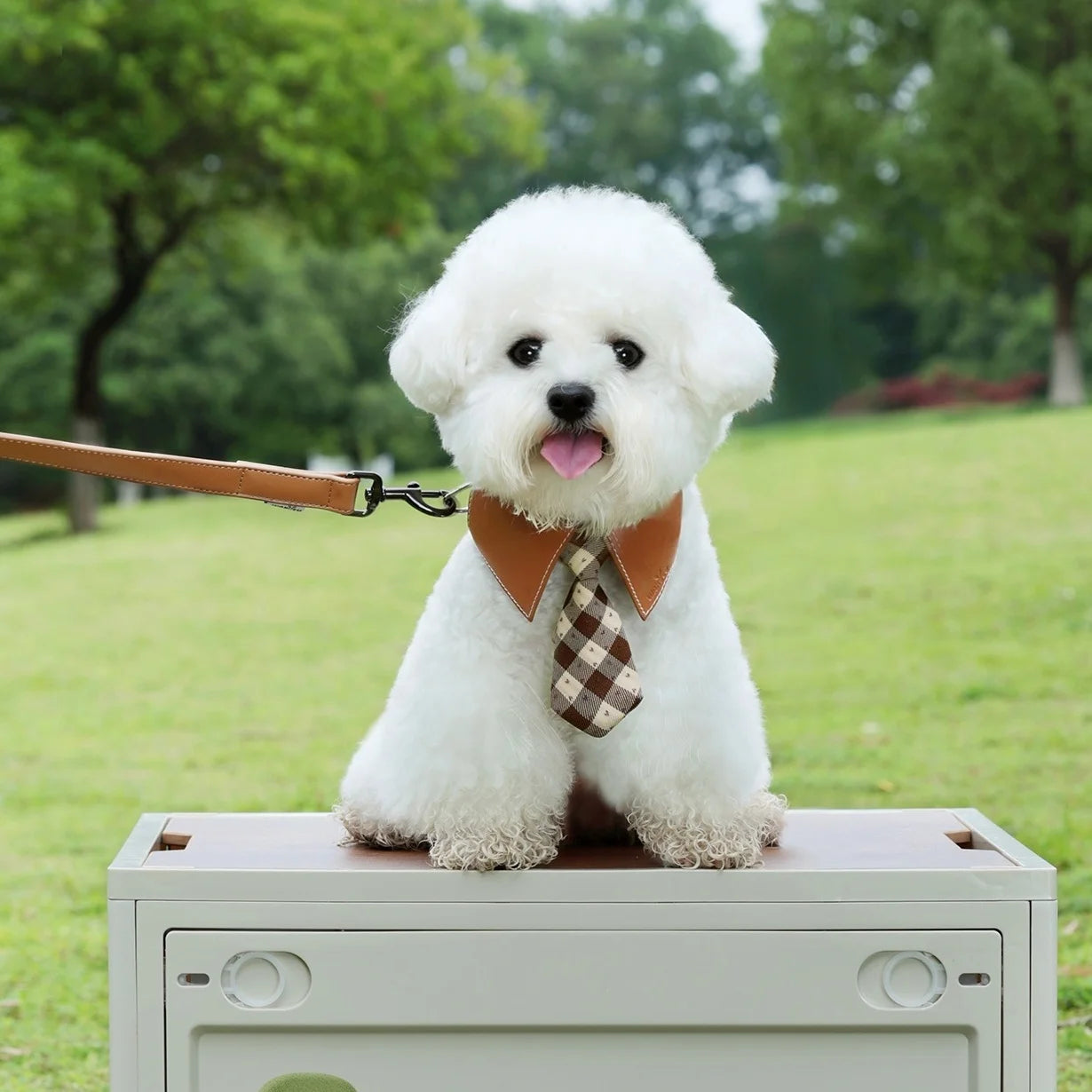 luxury leather Dog Bow Tie pet Drool Bib leather do Collar Scarf for Golden Retrievers Cute Cat Pet Accessories pet collar