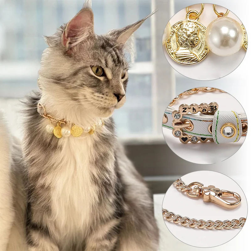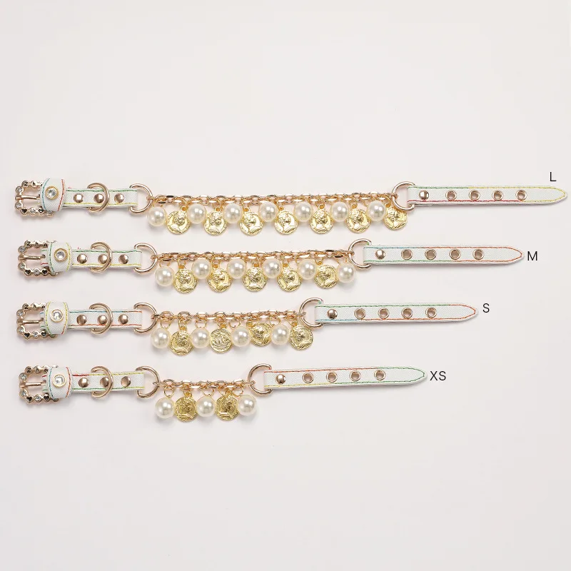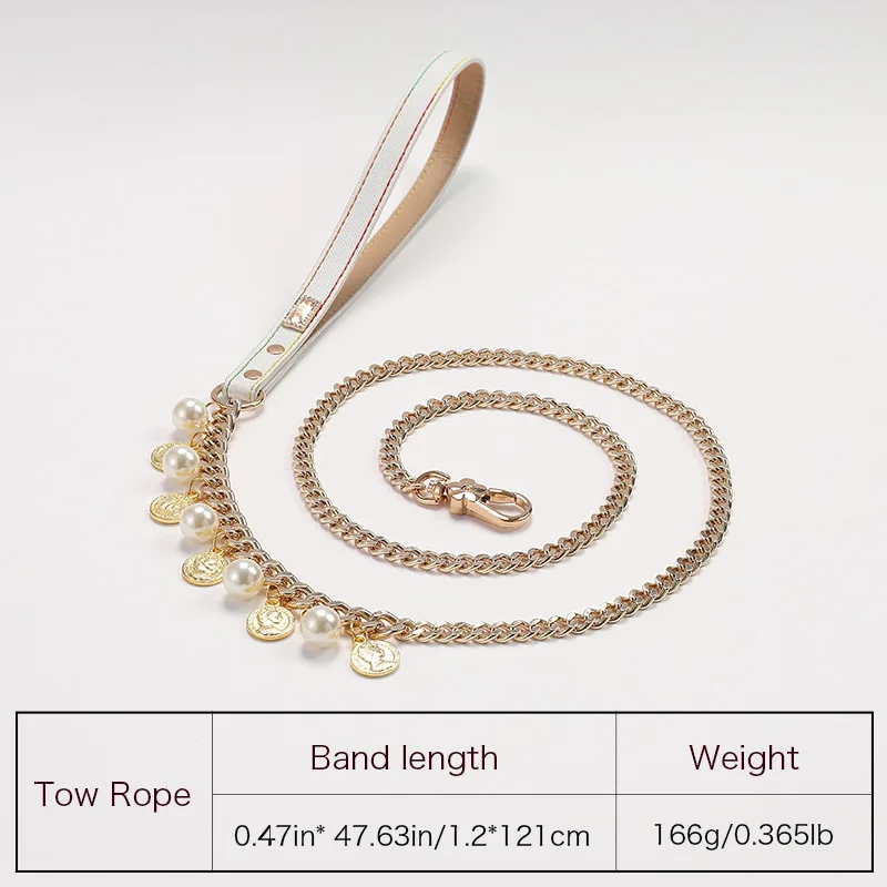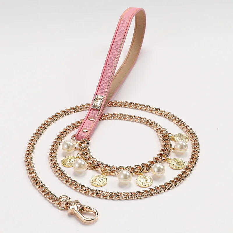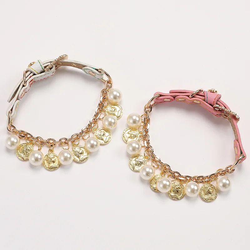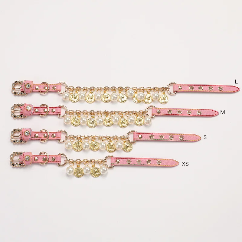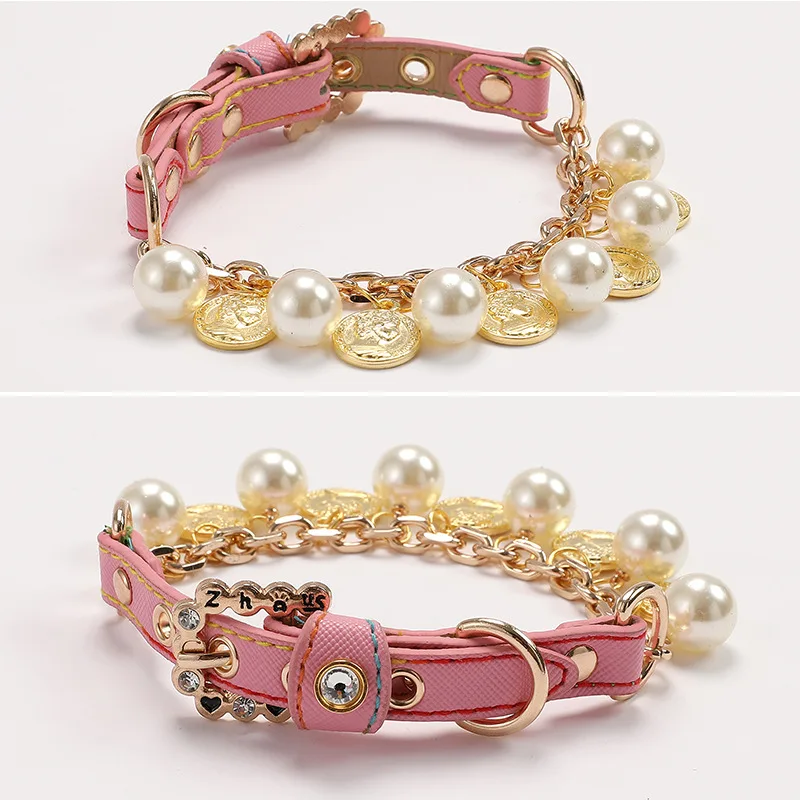 Luxury Pet Collar Pet Leash Delicate Imitation Pearl Dog Pearl Collars PU Leather Dog Metal Leash for Small Dogs Pet Accessories