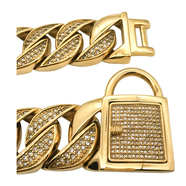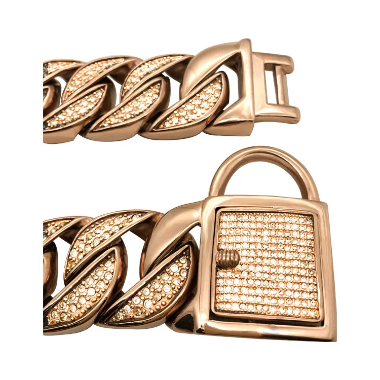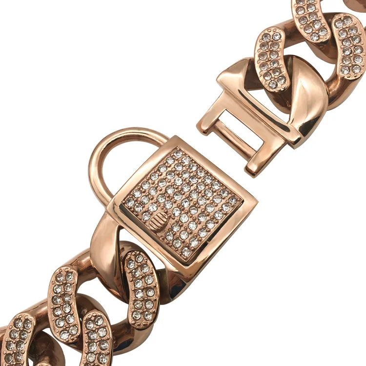 Pitbull Dog Chain Collar Bulldog Rose Gold Diamond Dog Collar Leash Stainless Steel Strong Heavy Large Dog Pet Collar Leash