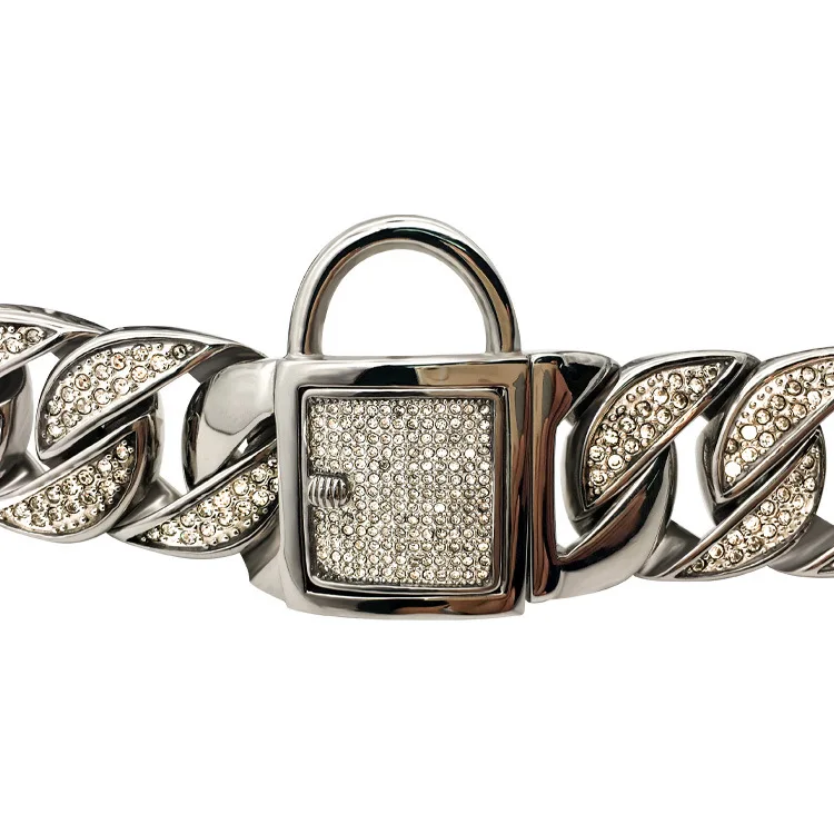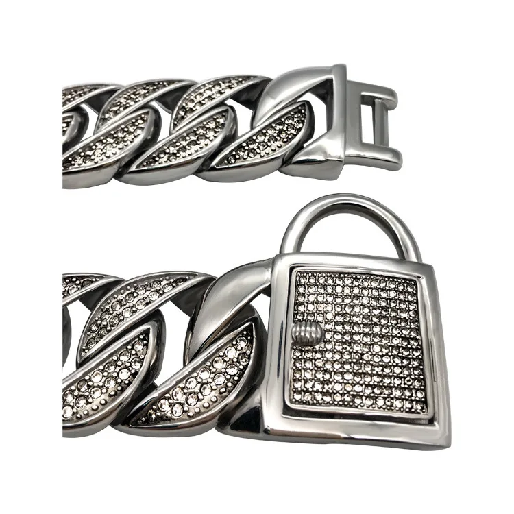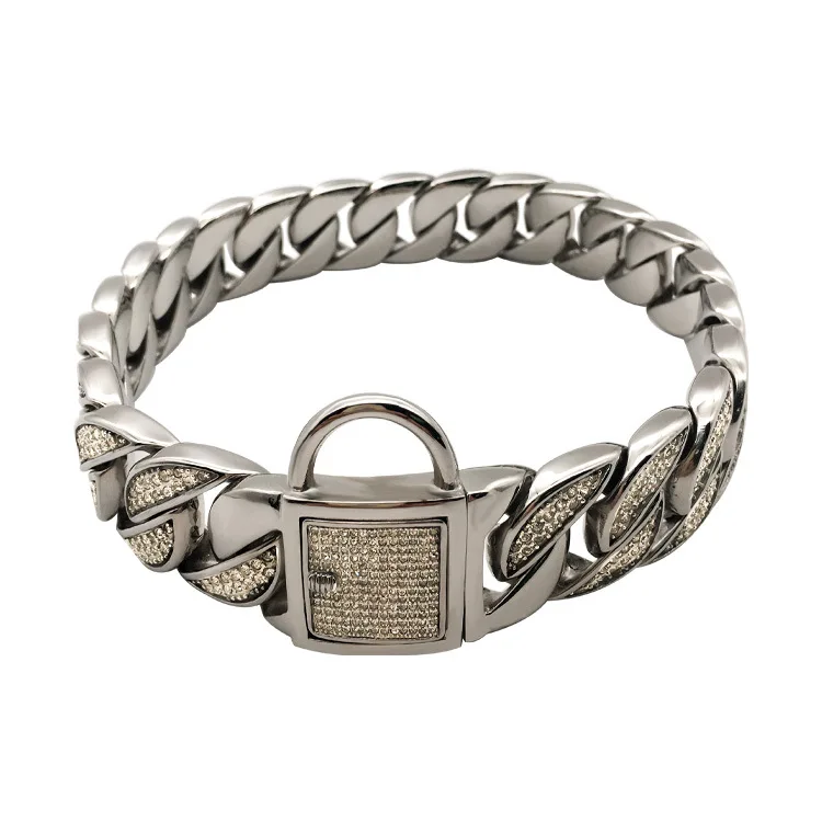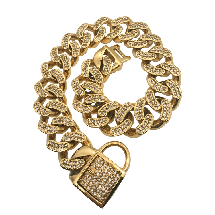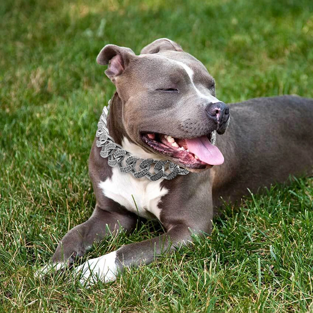 Luxury Rhinestone Dog Collar Chain Bling Diamond Customized 32mm Stainless Steel Pet Dog Collar Leash Bulldog Pitbull French