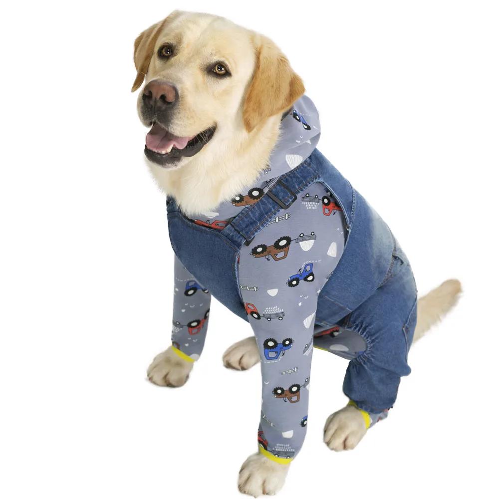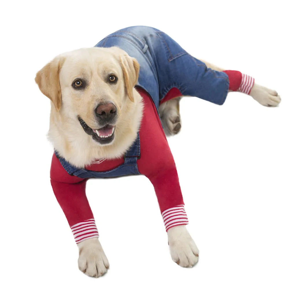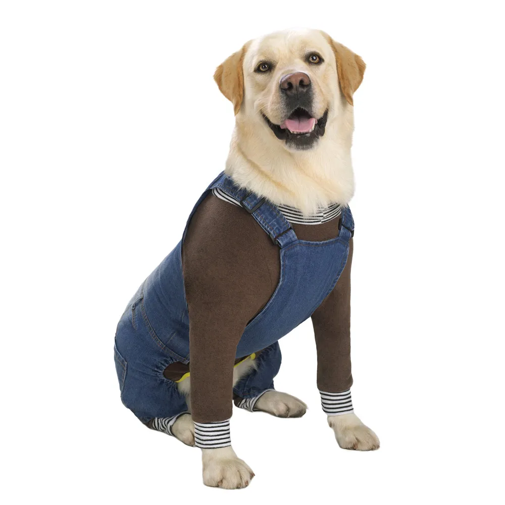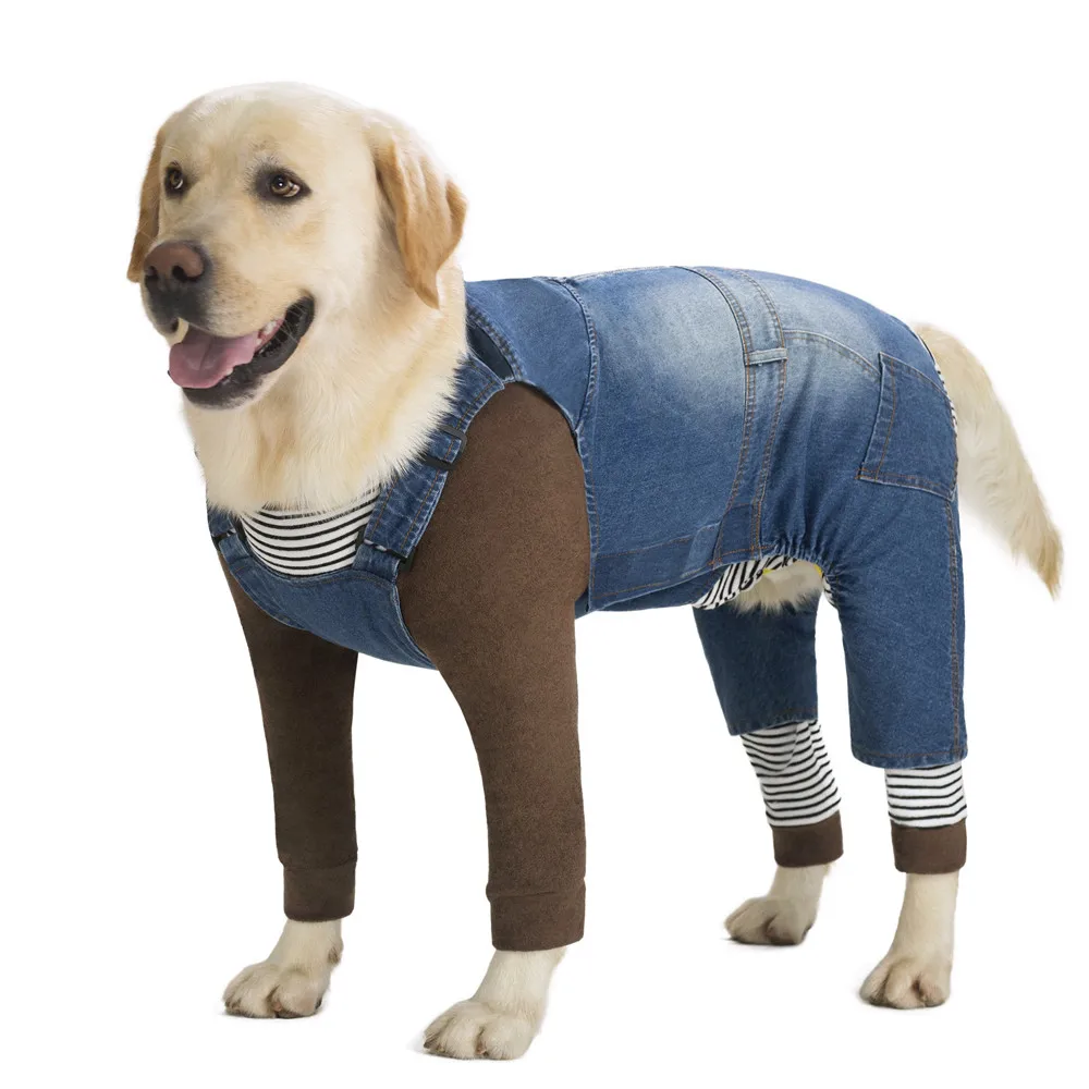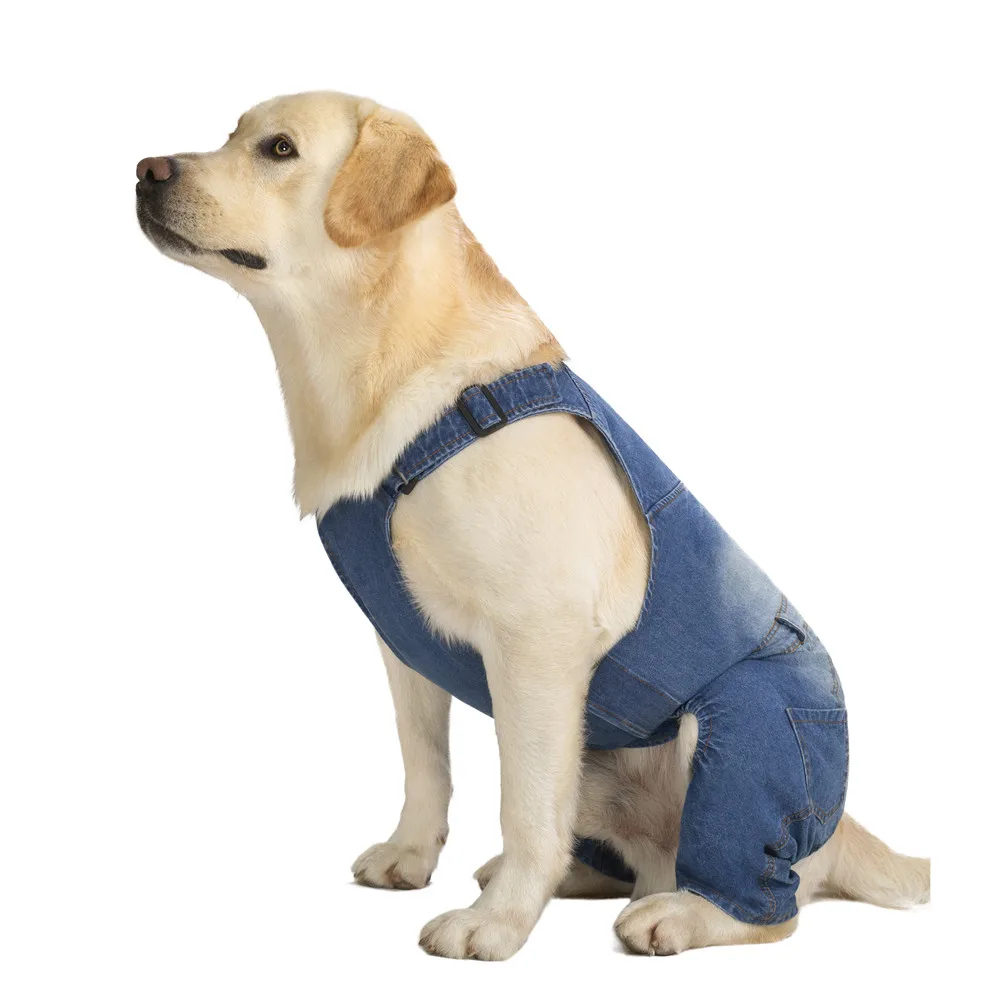 Miaododo Medium Large Dog Jeans Jumpsuit Overalls for Dogs Denim Clothes Costumes Blue Vintage Washed Dog Pants Classic Jacket