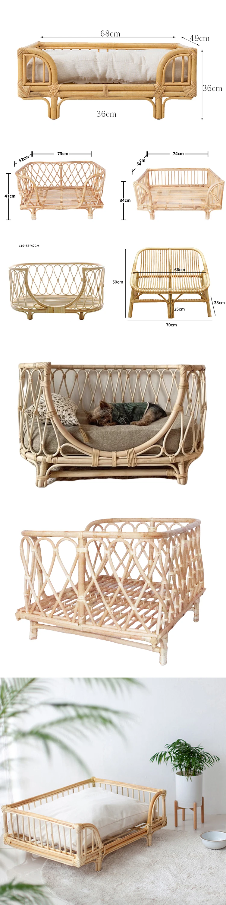 New Design Other Pet Beds and Accessories Rattan Dog Sofa Bed Natural Handmade Luxury Furniture for Pets