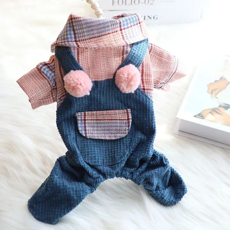 New Dog Jumpsuit Knited Sweater Plaid Jeans Jacket Pants Suit Onesies Trousers Pet Autumn Coat Jaket Puppy Overalls