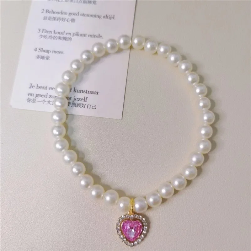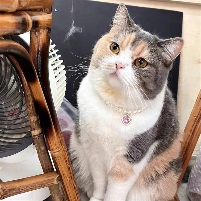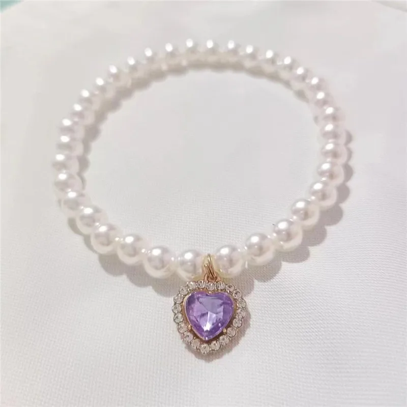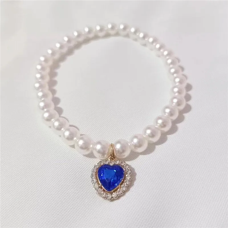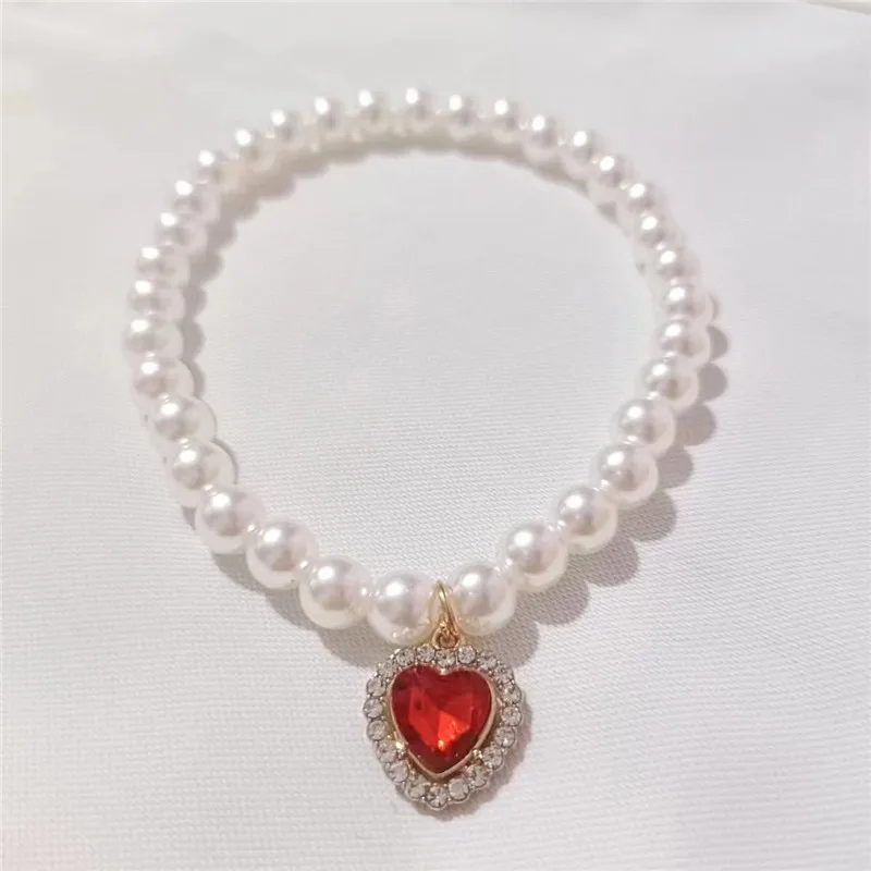 Pearl Dog Collar Necklaces Luxury Bling Rhinestones Wedding Cat Collar Heart Jewelry Dogs Cat Clothes Costume Pet Accessories