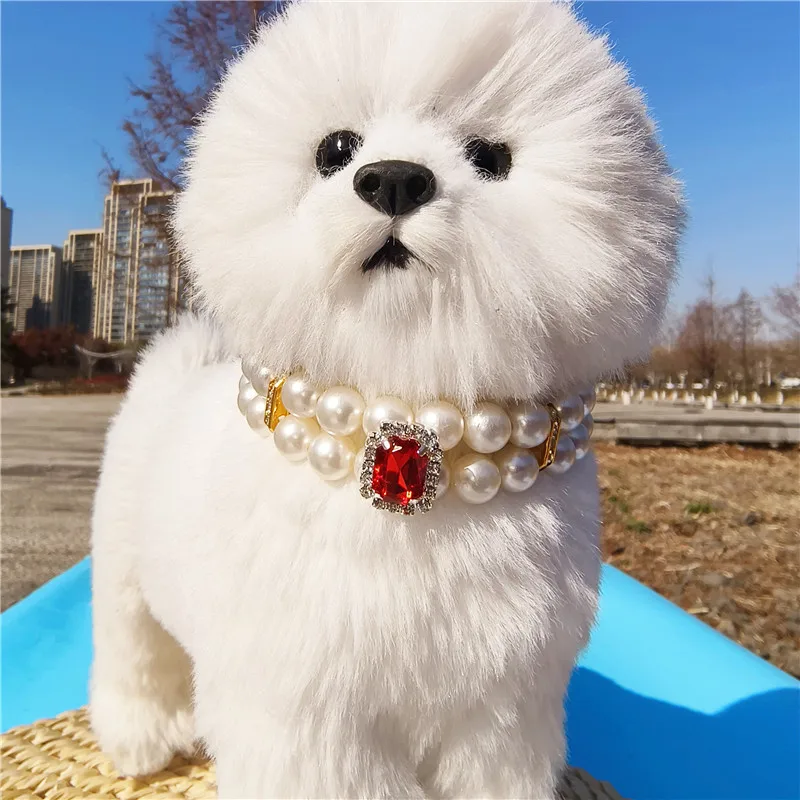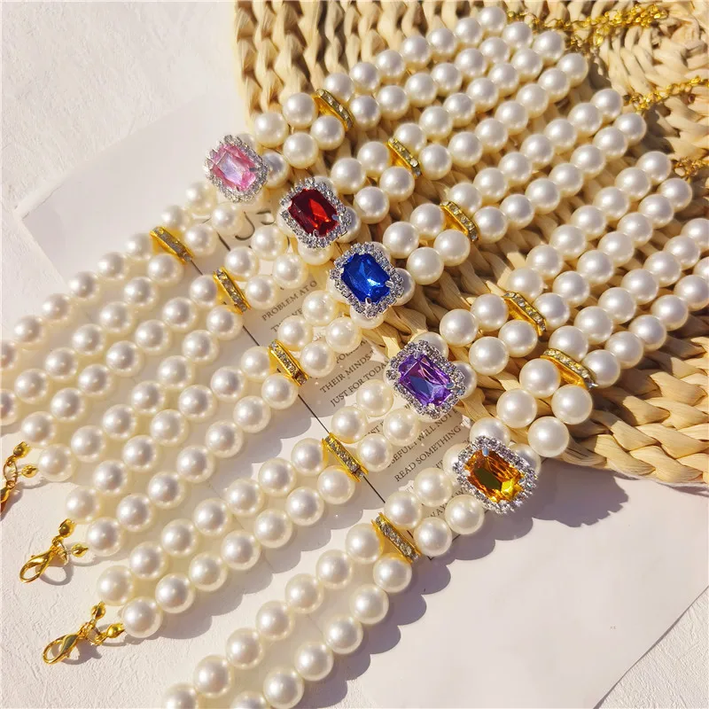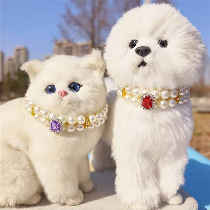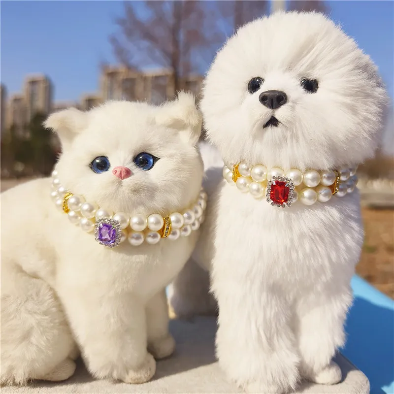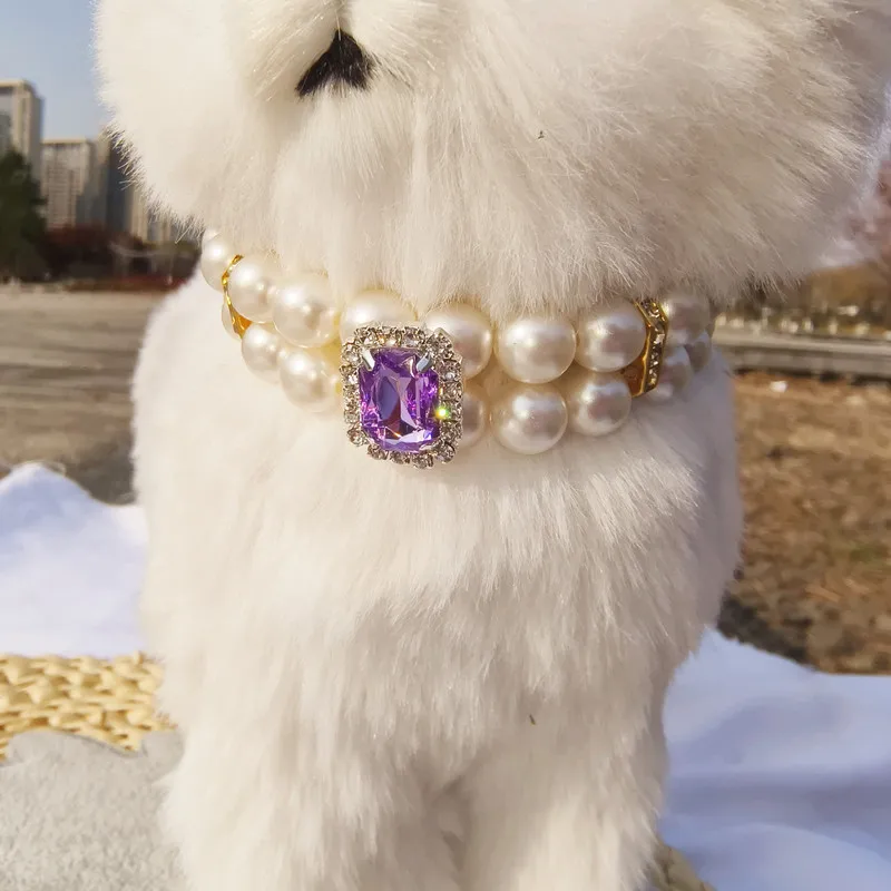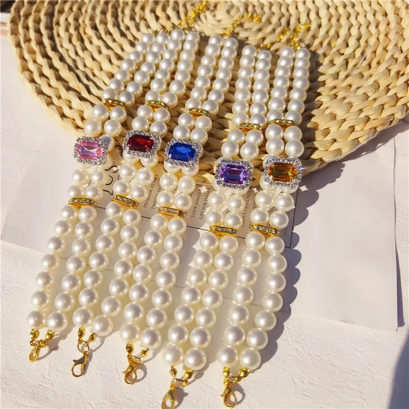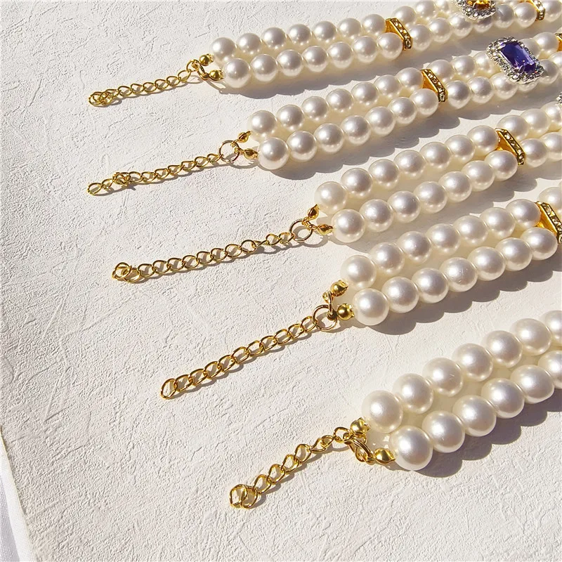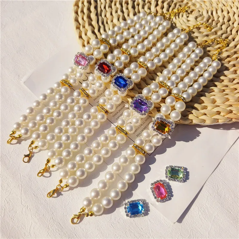 Pearl Dog Collar Necklaces Luxury Bling Rhinestones Wedding Collar Crystal Jewelry for Dogs Cat Clothes Costume Pet Accessories