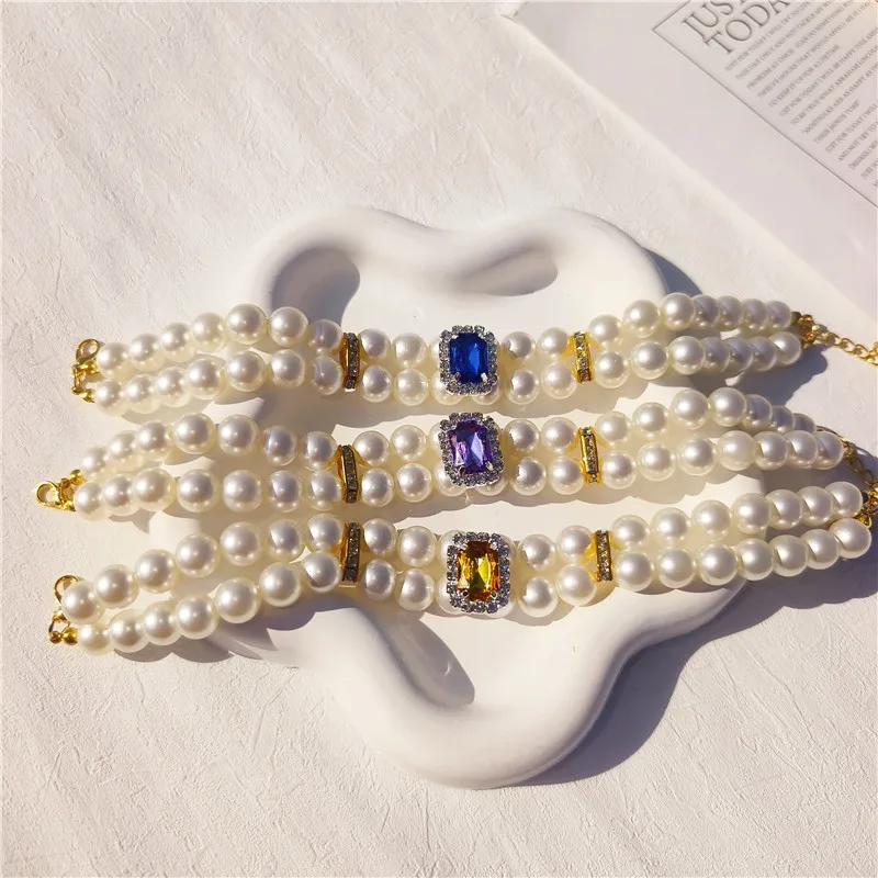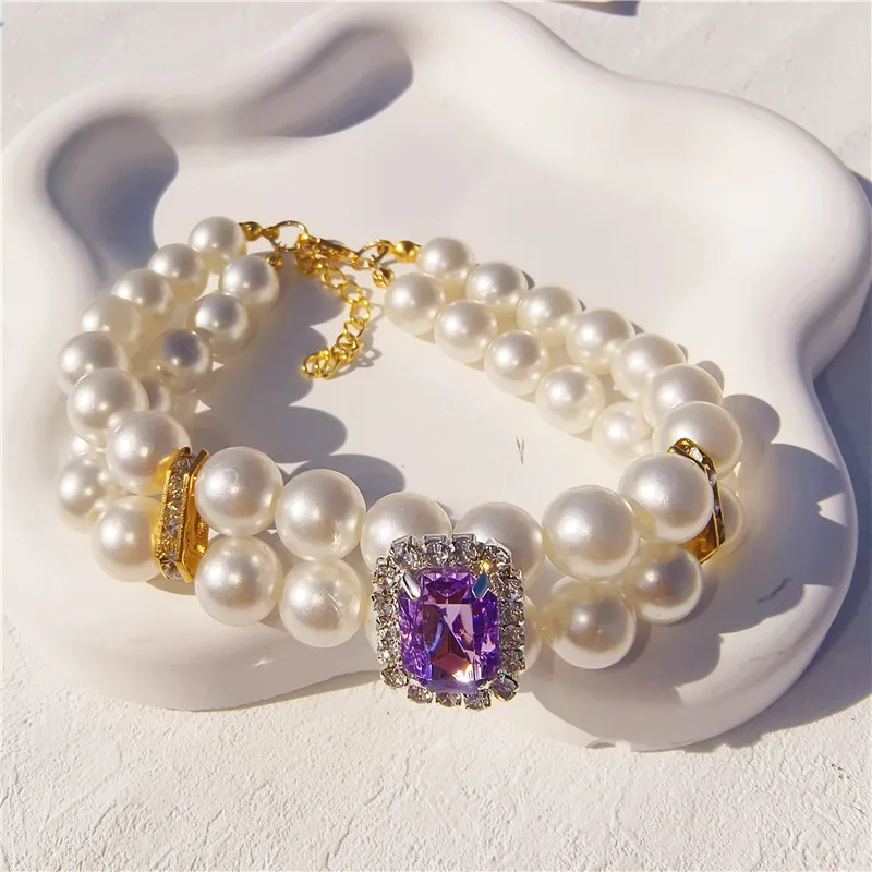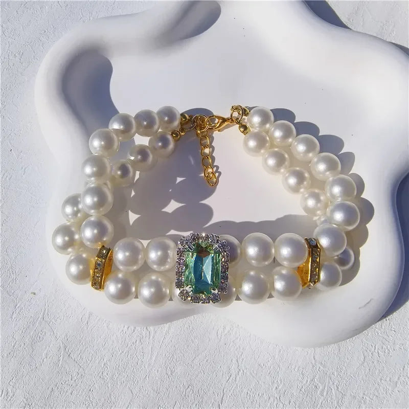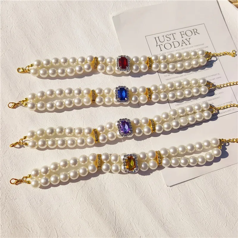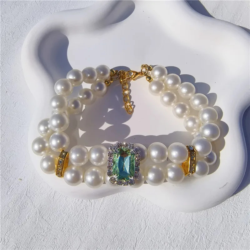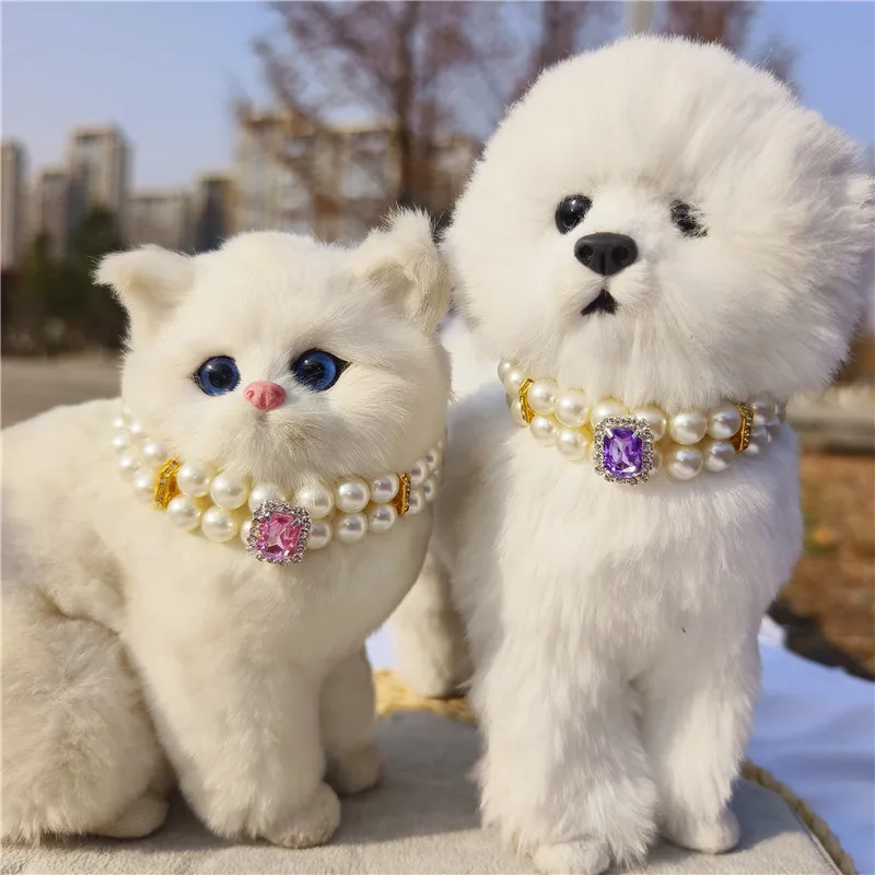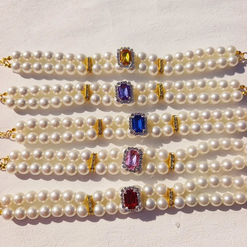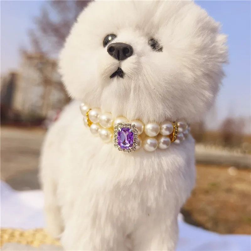 Pearl Dog Collar Necklaces Luxury Bling Rhinestones Wedding Collar Crystal Jewelry for Dogs Cat Clothes Costume Pet Accessories