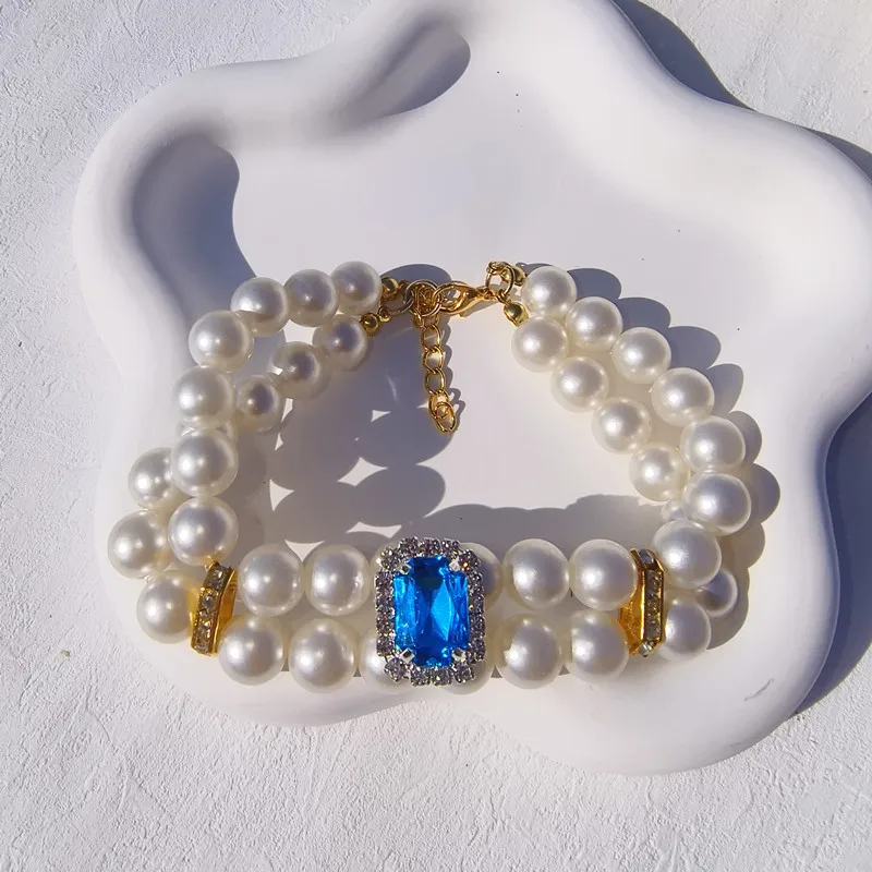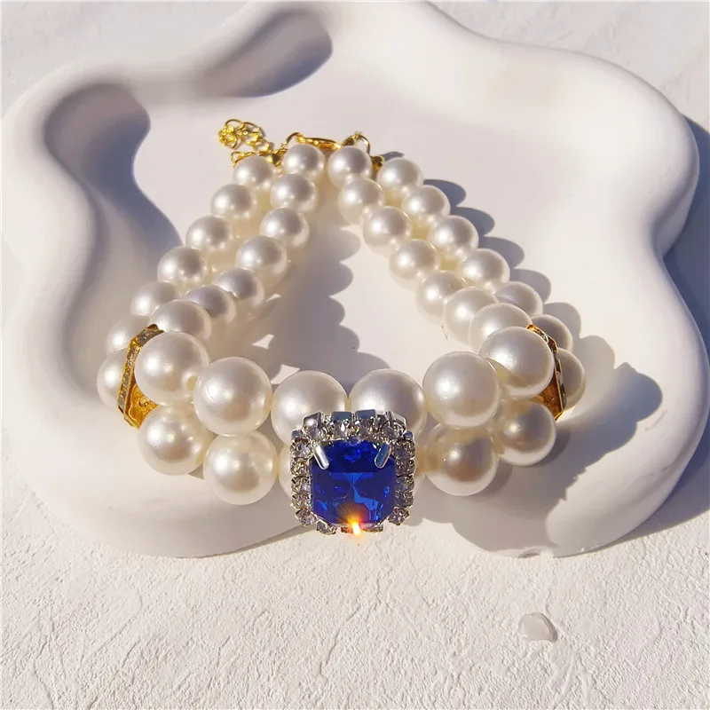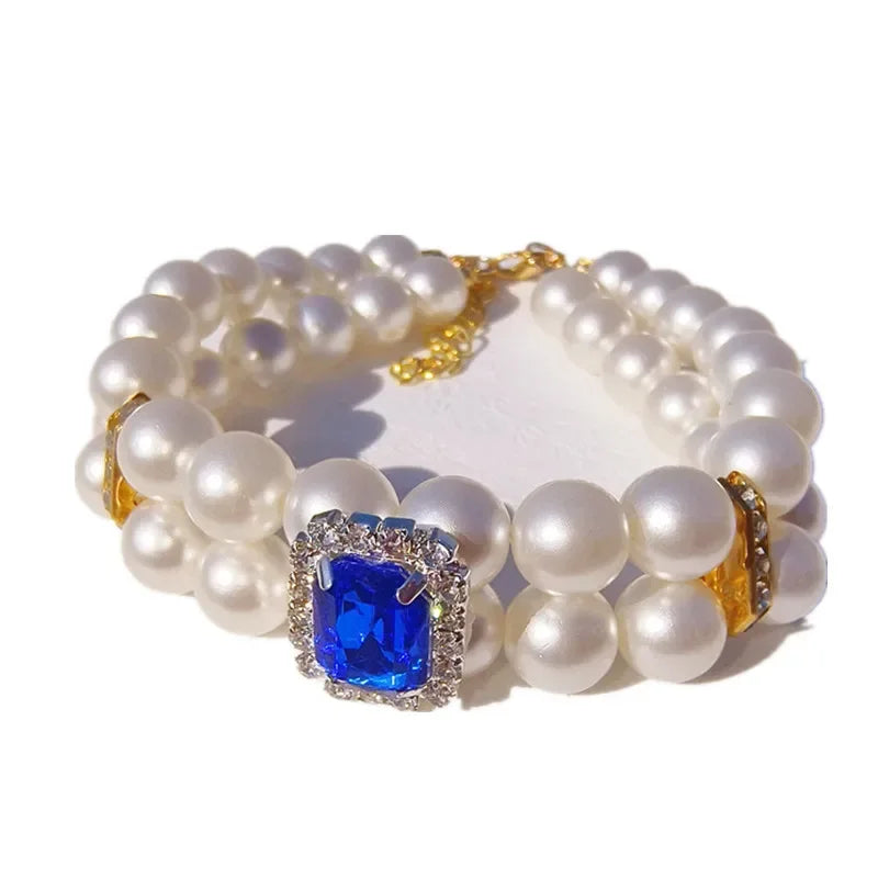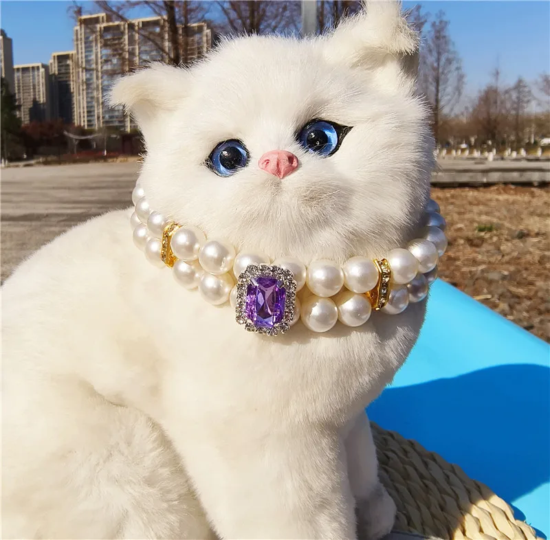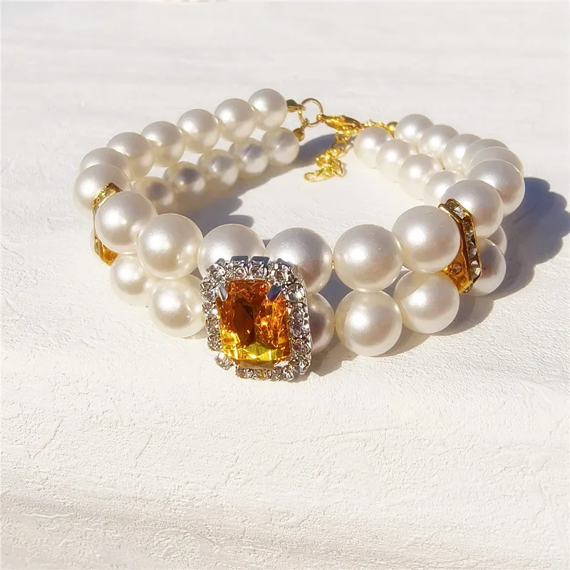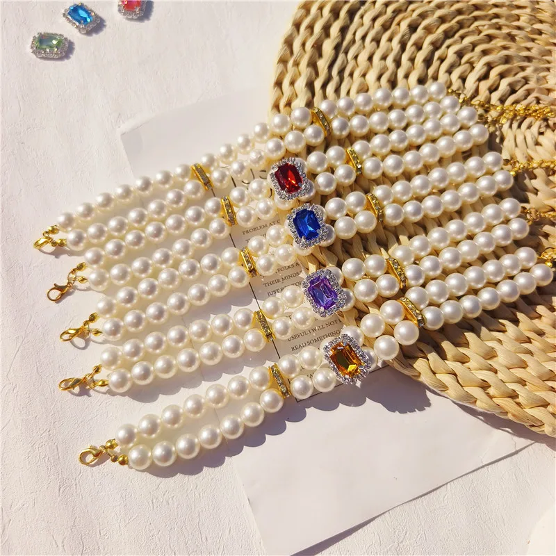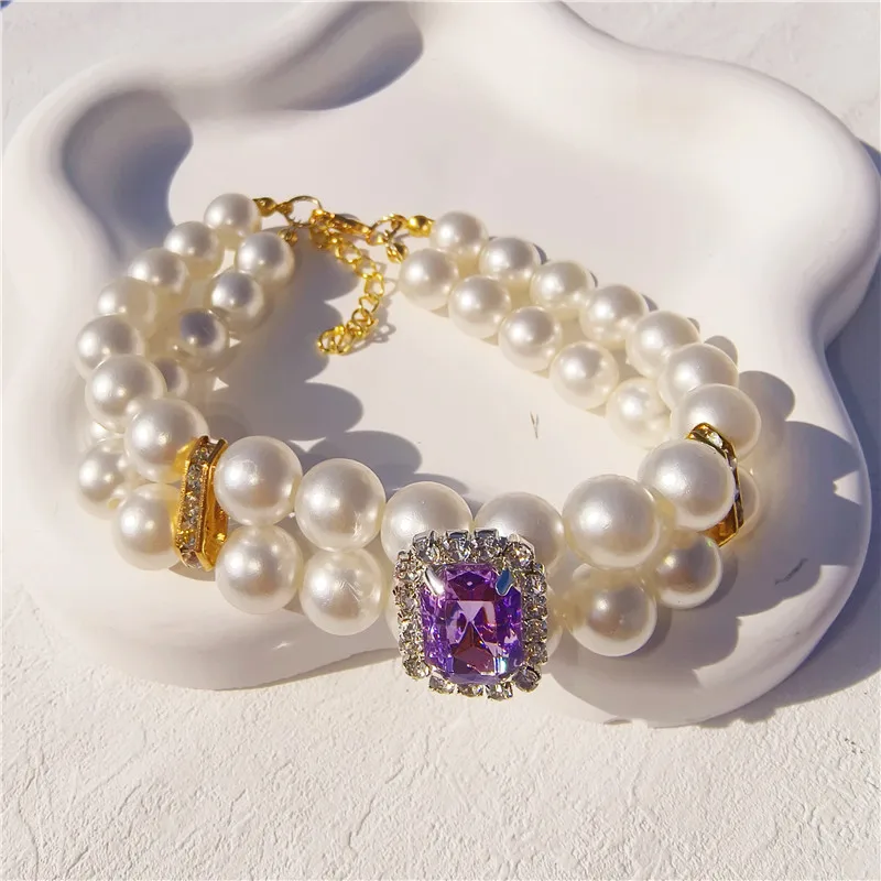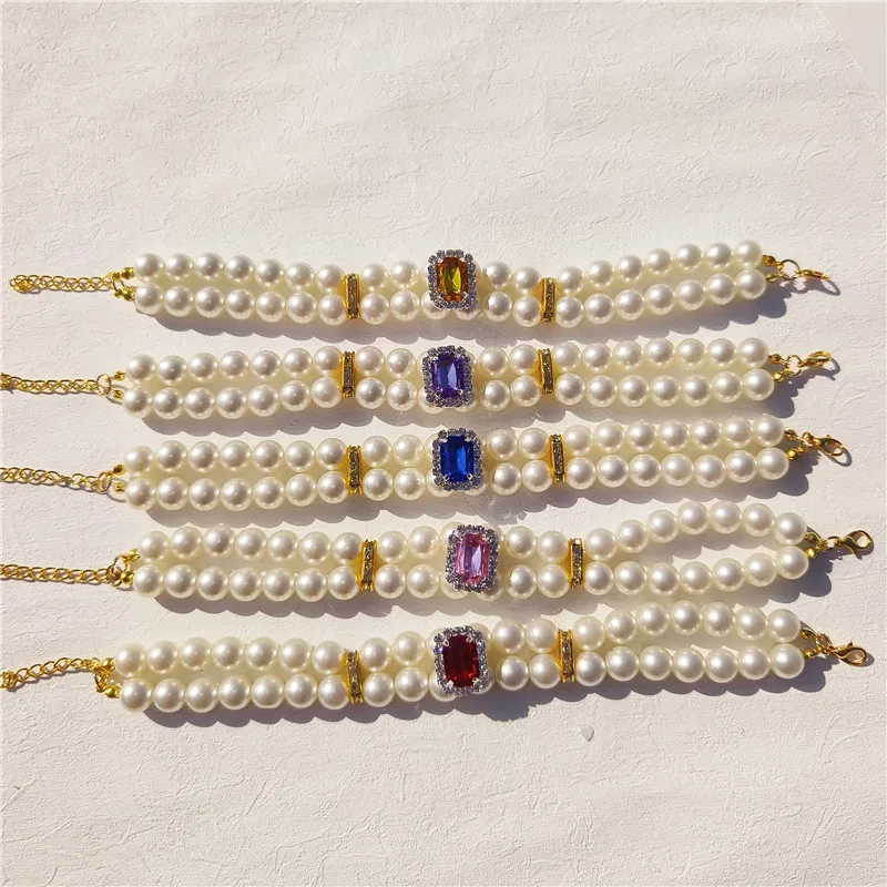 Pearl Dog Collar Necklaces Luxury Bling Rhinestones Wedding Collar Crystal Jewelry for Dogs Cat Clothes Costume Pet Accessories