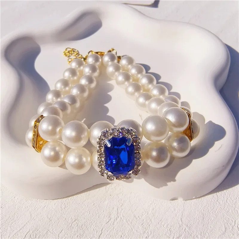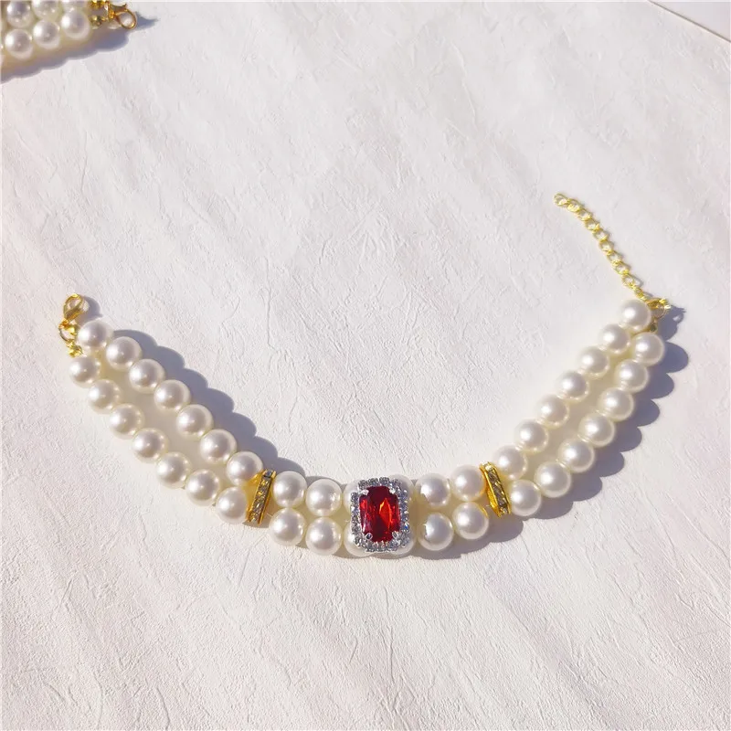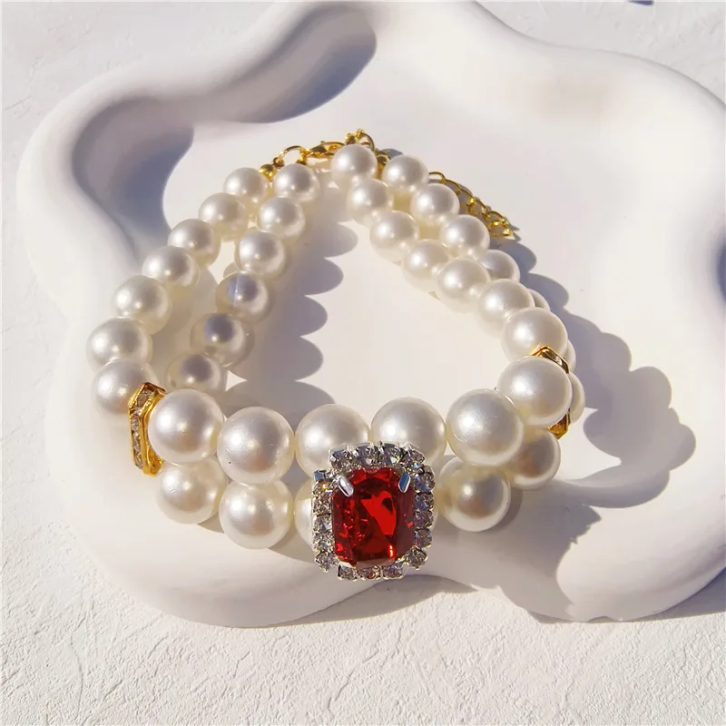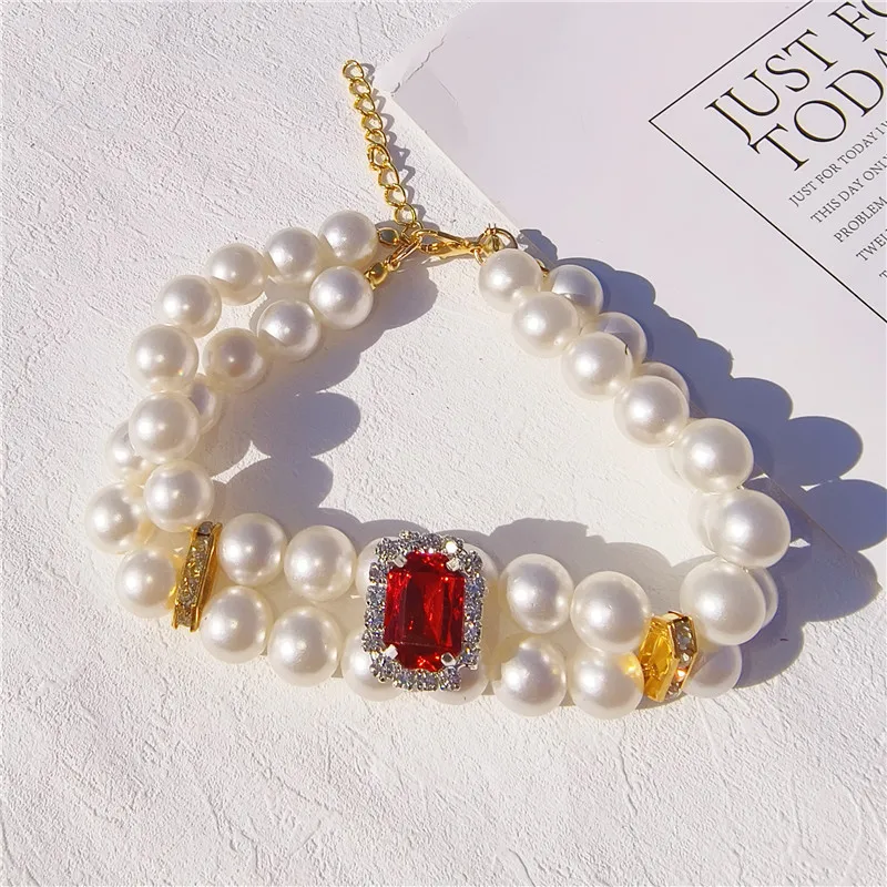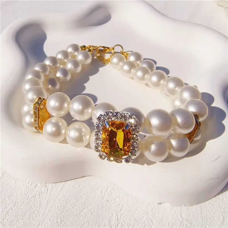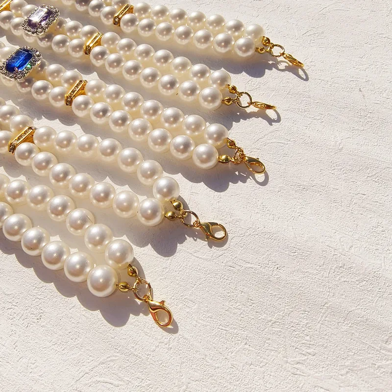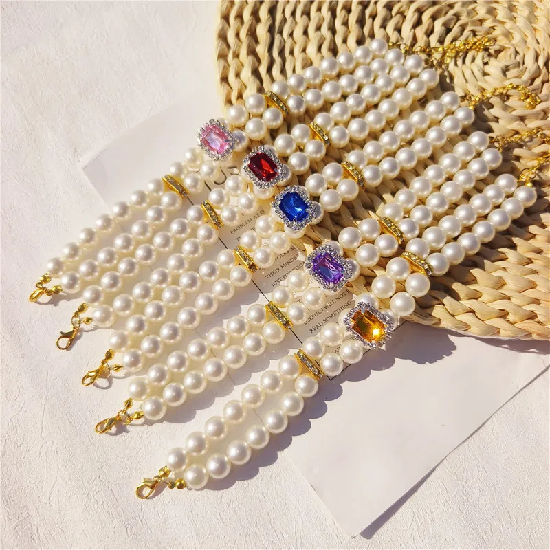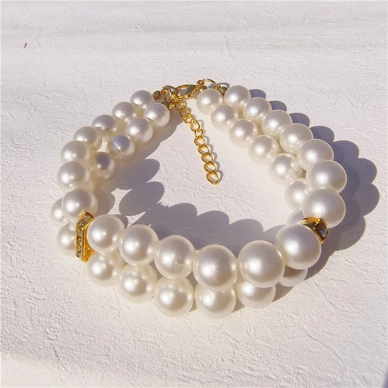 Pearl Dog Collar Necklaces Luxury Bling Rhinestones Wedding Collar Crystal Jewelry for Dogs Cat Clothes Costume Pet Accessories