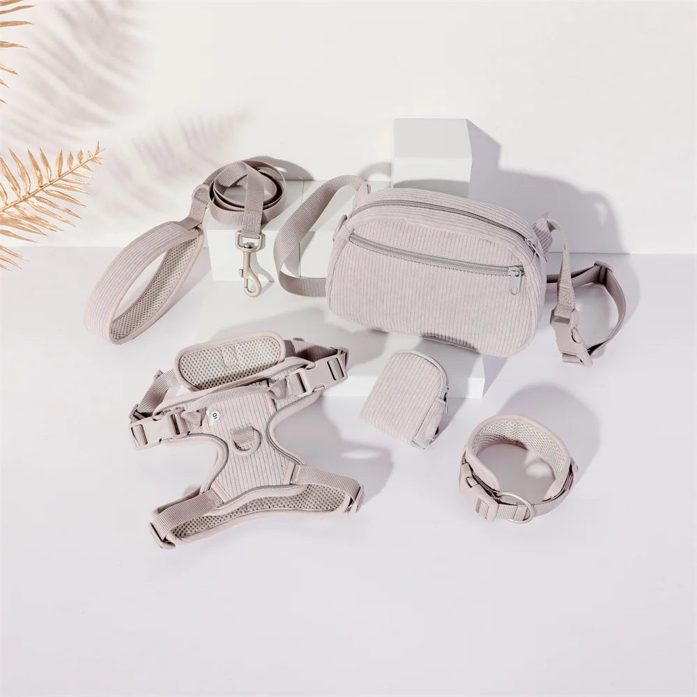 Personalized Dog Harness Luxury Designer Harness and Lead Set with Collar Engraved Name Poop Bag Holder Walking Bag Pet Gift Set