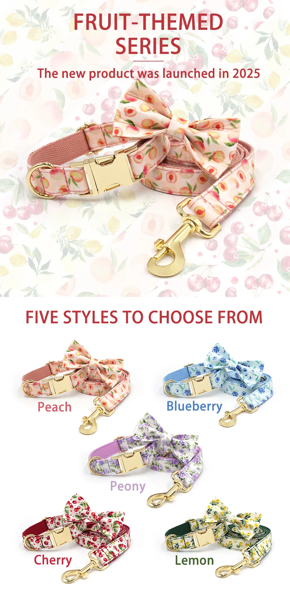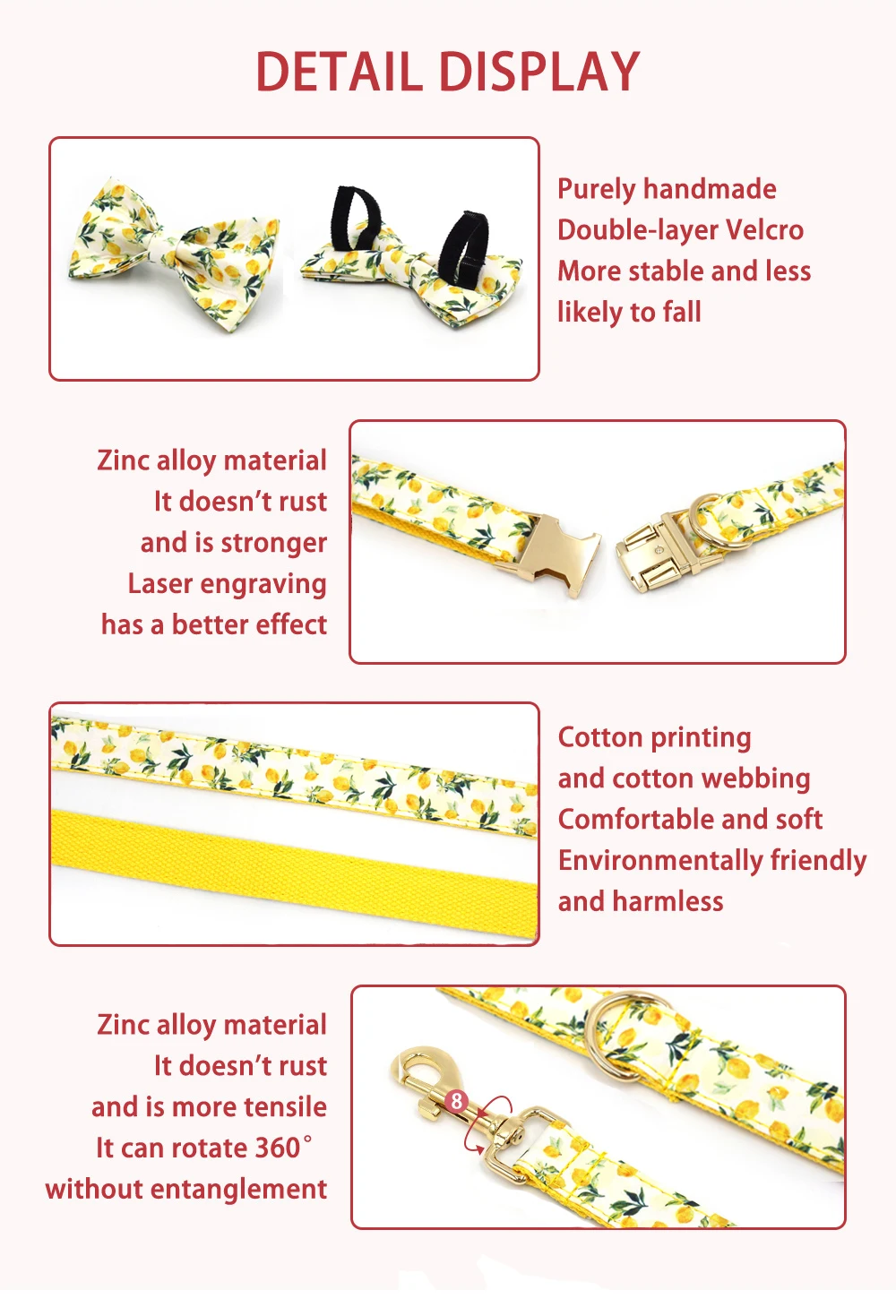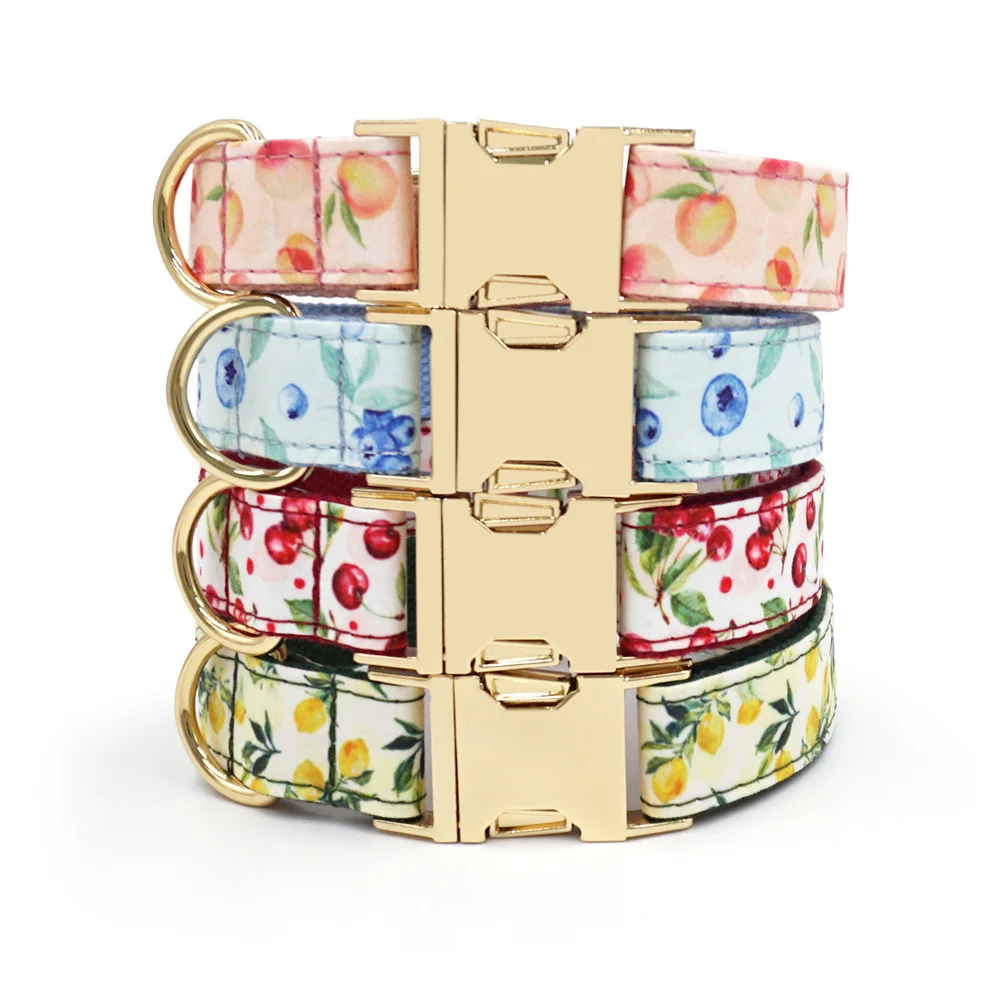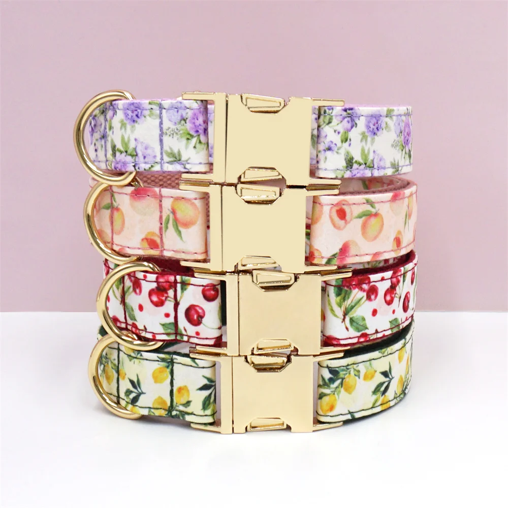 Personalized Pet Collar for Cats Small Medium Large Dogs Lemon Printing Luxury Designer Bow Dog Collar & Leash Set with Poop Bag
