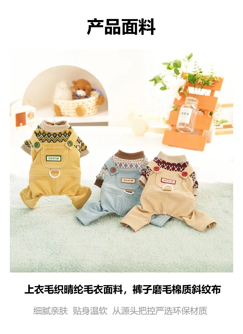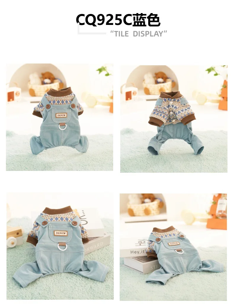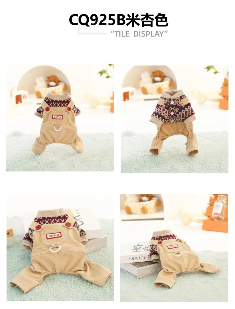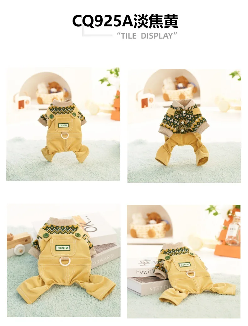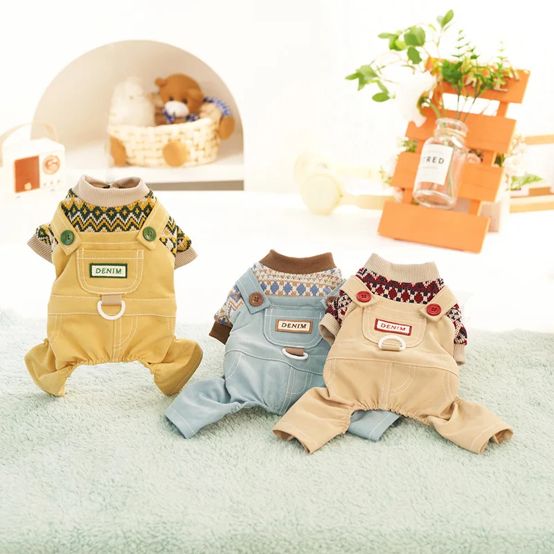 Pet Autumn and Winter Contrasting Overalls Single-layer Four Legged Pants Set Cute Dog Jumpsuit Pet Pajamas Puppy Clothes