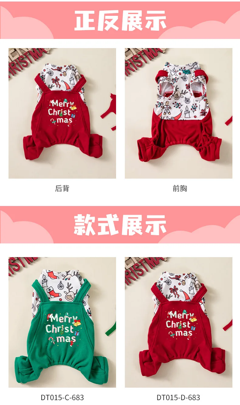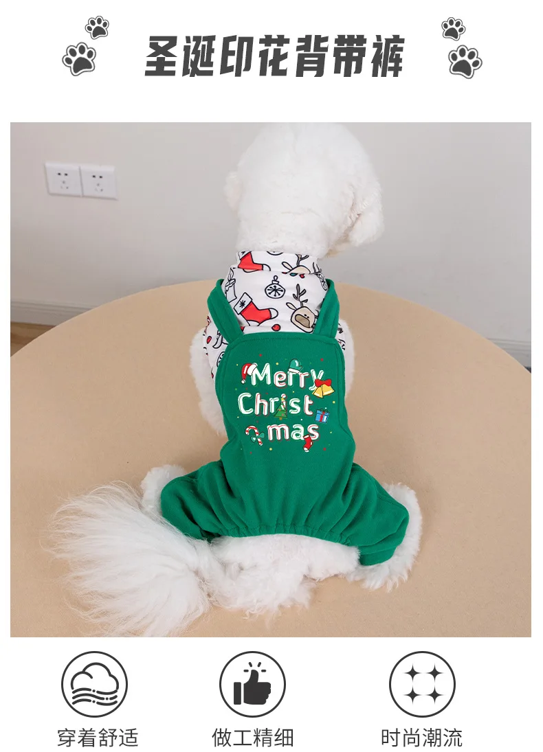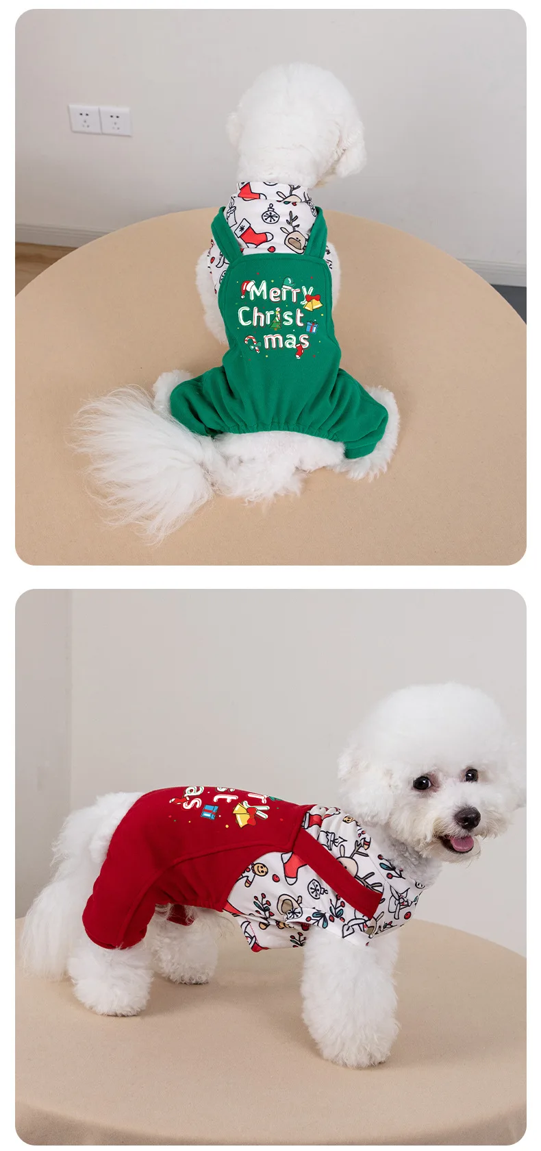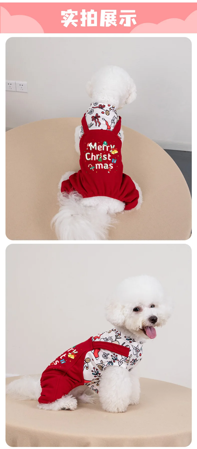 Pet Christmas Jumpsuit Pet Autumn and Winter Overalls Warm Teddy Jacket Dog Pajamas Puppy Clothes Four Legged Pants