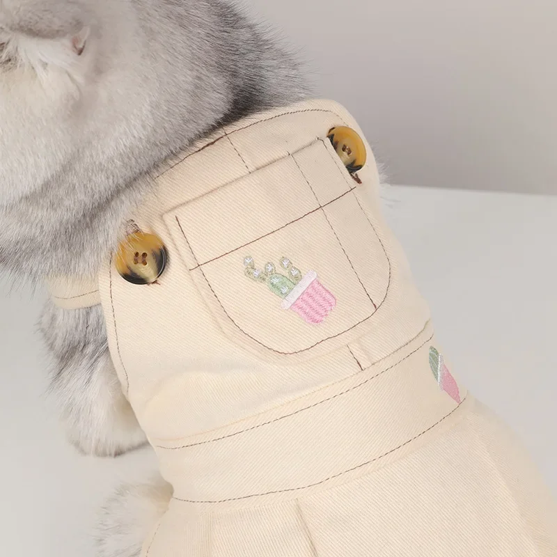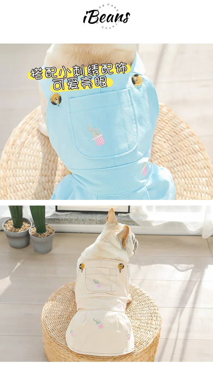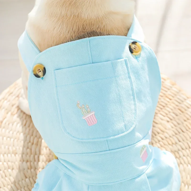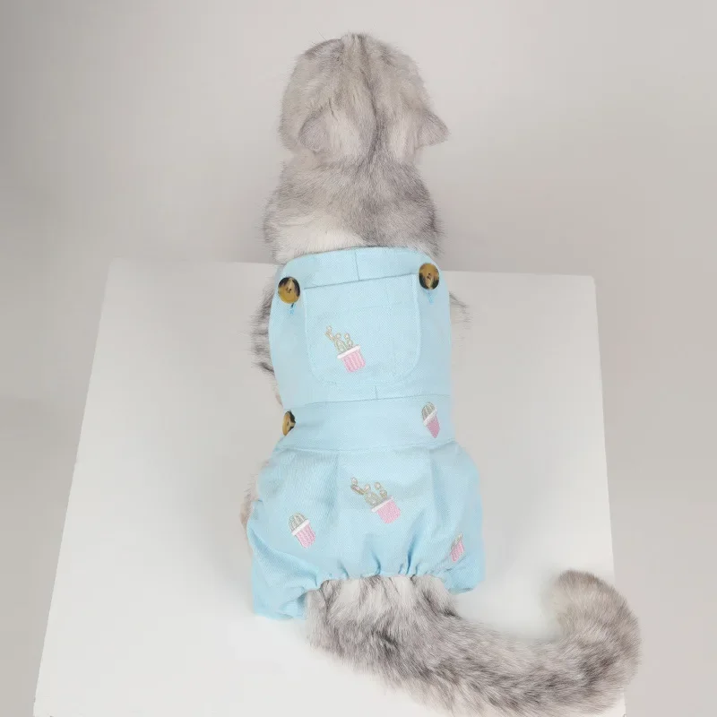 Pet denim overalls thickened overalls skirt cotton four seasons dog clothes embroidered pumpkin pants four seasons universal cor