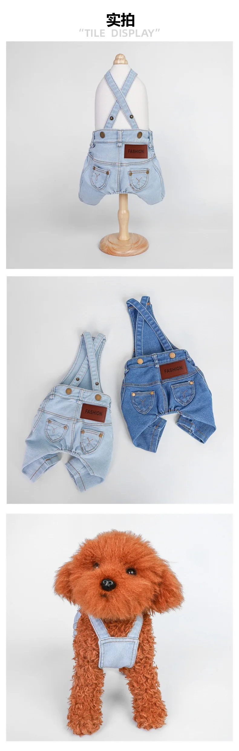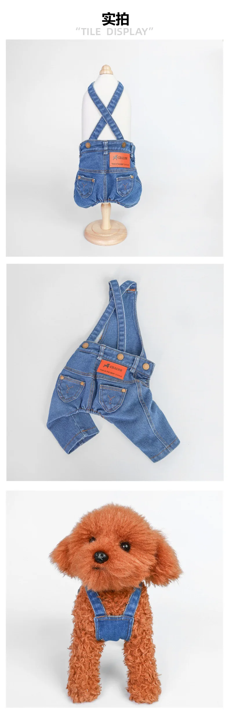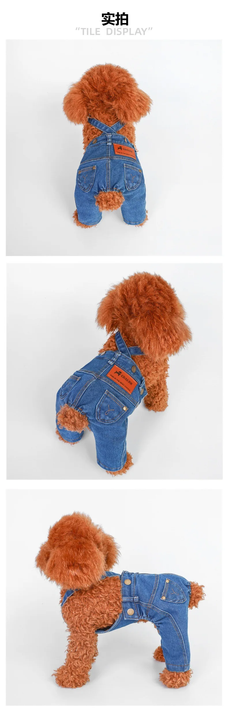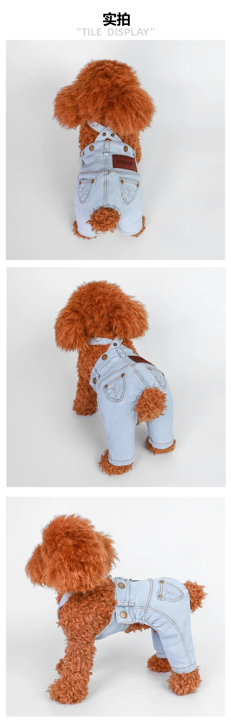 Pet Dog Denim Overalls Spring and Autumn Jumpsuit Overalls Pet Clothes Dog Pants Teddy Puppy Clothes for Small Dogs