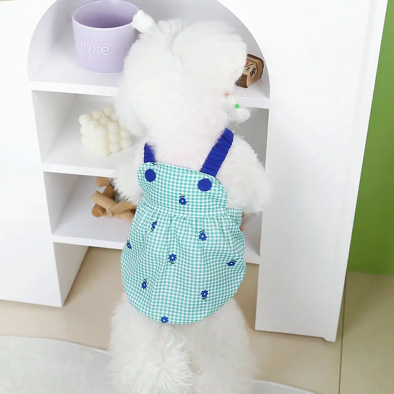 Puppy Dress Summer Pet overalls |Black & White Striped Dress-|Luxury Blue Overalls Vest