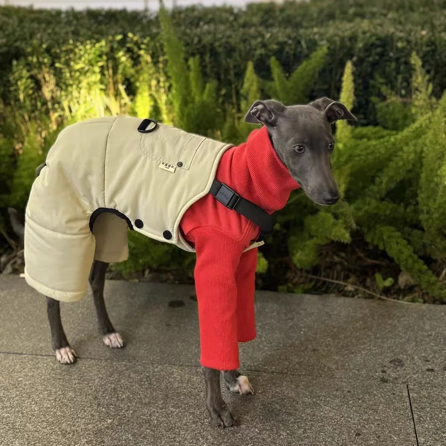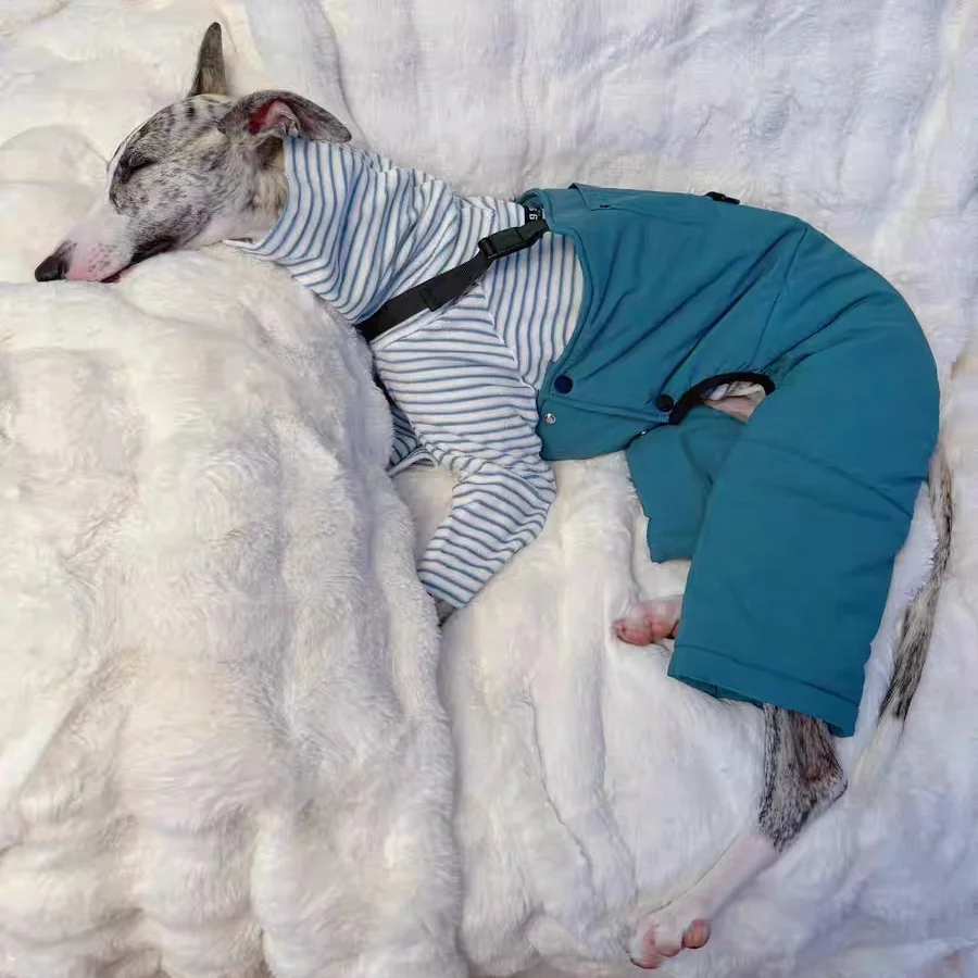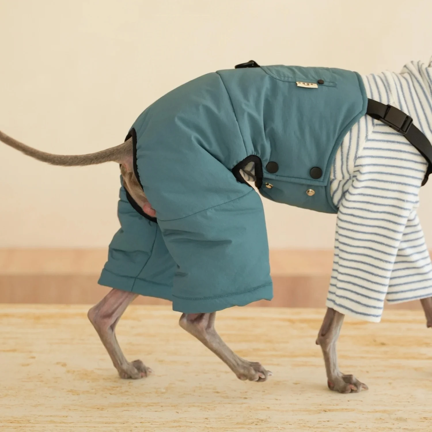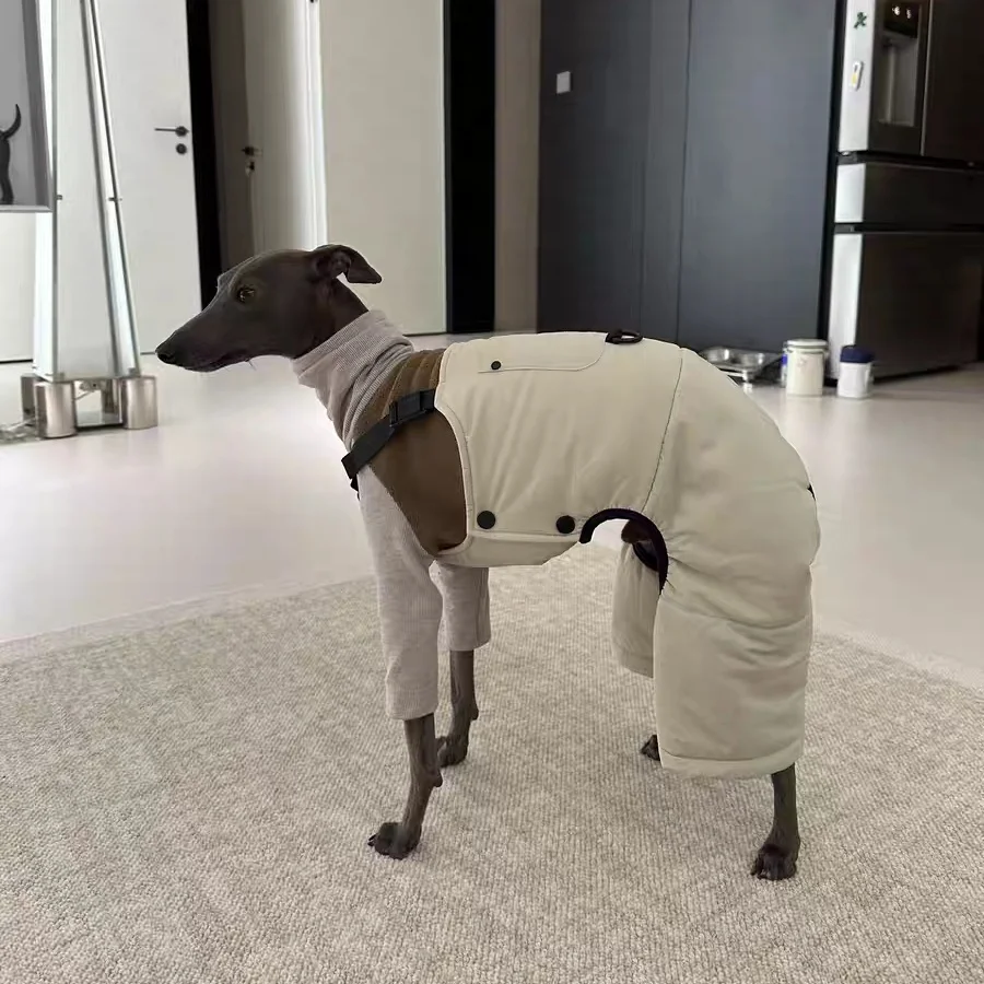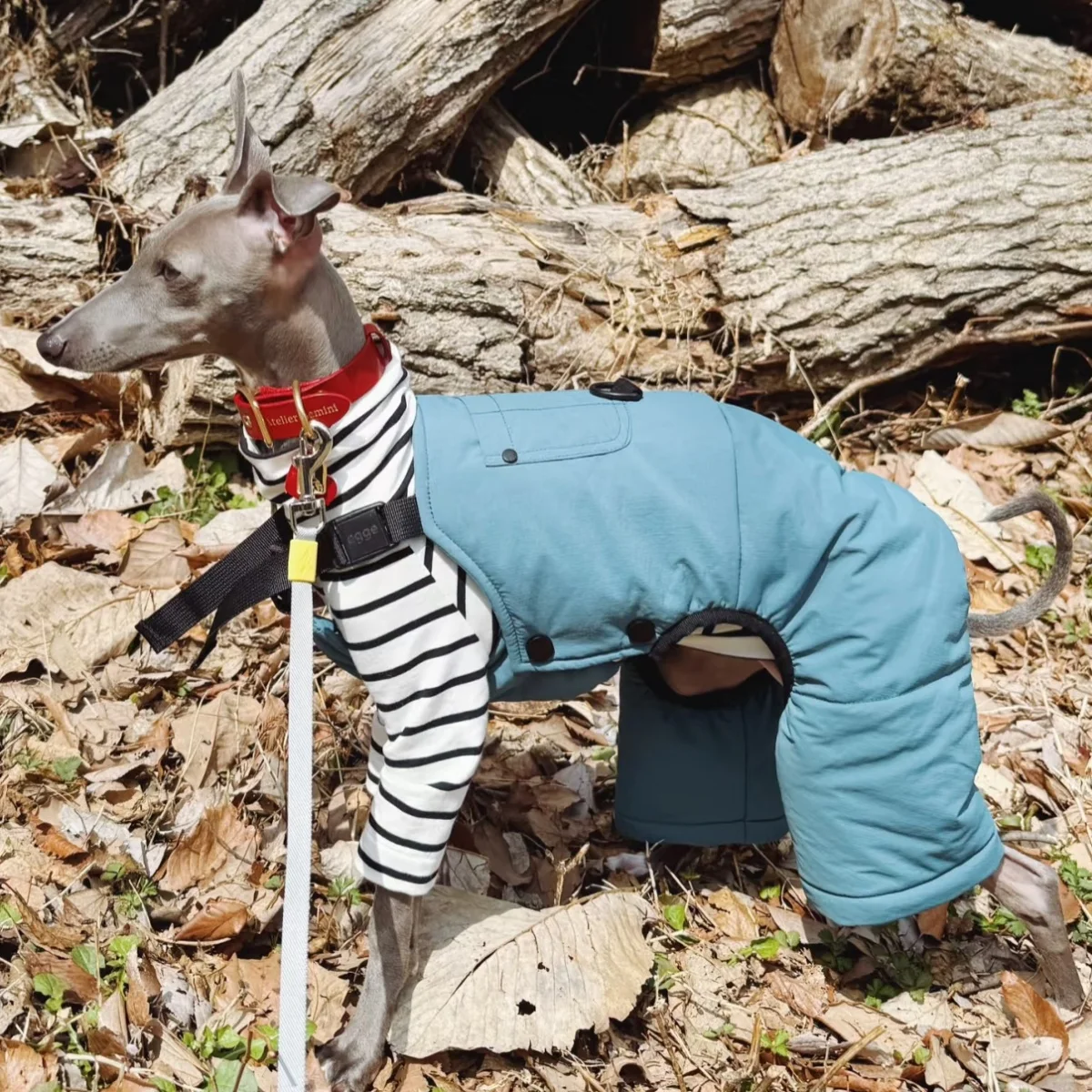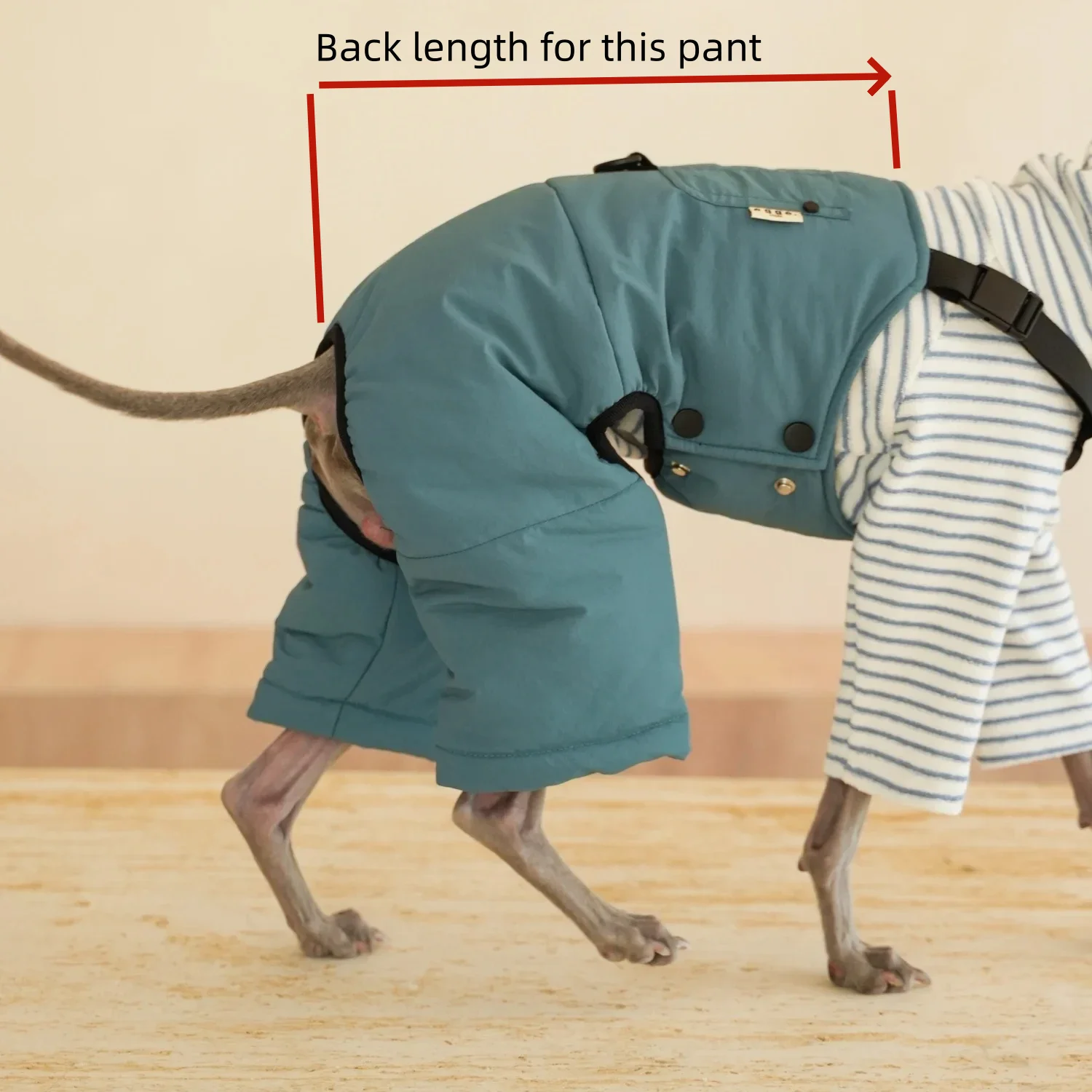 Thick Blue Cotton Cargo Overalls for Italian Greyhound in Autumn Winter Warm Khaki Pant for Dogs British Style Suit for Whippet