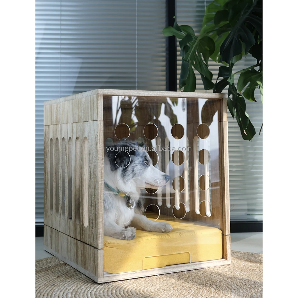 Ventilated Wooden Dog House Removable Acrylic Door With Honeycomb Vents Pet Beds Dog Beds Luxury Pet Houses & Furniture